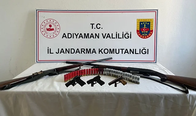 Adıyaman'da Jandarma tarafından 9 şüphelinin ev ve eklentilerinde yapılan aramada 2 av tüfeği ile 3 tabanca ele geçirildi.ADIYAMAN (İGFA) - Adıyaman İl Jandarma Komutanlığı, önleyici kolluk devriyesini sürdürüyor.Ekipler devriye esnasında, S.Y., H.O., S.P., A.T., Ö.K., M.E.Z., M.G.T., M.M.C.ve M.Y. adlı 9 şüpheliyi yakın takibe aldı.Şahısların ev ve eklentileri ile araçlarında yapılan aramalarda 2 av tüfeği ile 3 tabanca ele geçirildi.Adıyaman İl Jandarma Komutanlığı, vatandaşların huzur ve güvenliği için çalışmalarına aralıksız devam edeceğini duyurdu.