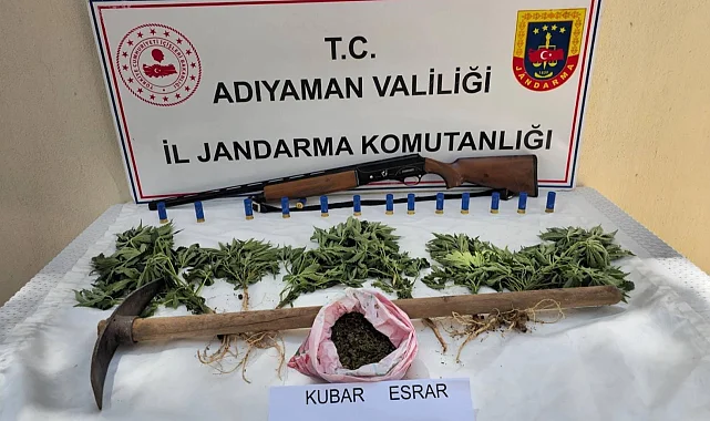 Adıyaman Jandarması, uyuşturucu ve ruhsatsız silah operasyonu yaptı.Bir şahsın evinde 400 gram esrar, 10 kenevir ve bir ruhsatsız av tüfeği bulundu.ADIYAMAN (İGFA) -Adıyaman İl Jandarma Komutanlığı ekipleri, uyuşturucu ve ruhsatsız silah bulunduran şahıslara yönelik çalışmalarını sürdürüyor.Bu kapsamda O.D. isimli şahsın ikametinde ve eklentilerinde yapılan aramalarda 400 gram kubar esrar, 10 kök kenevir bitkisi ile 1 adet ruhsatsız av tüfeği ele geçirildi.Şüpheli şahıs hakkında adli işlemlere başlanırken, jandarma ekipleri halkın huzur ve güvenliği için denetim ve operasyonlarına kararlılıkla devam edeceklerini belirtti.