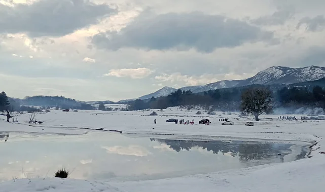 Bilecik'in Osmaneli ilçesinde bulunan Ağlan Göleti, kar yağışının ardından beyaza bürünerek ziyaretçilerine kartpostallık manzaralar sundu.Pazaryeri Gündem / BİLECİK (İGFA) - Bilecik'in Osmaneli ilçesine bağlı Adliye köyünde yer alan Ağlan Göleti, etkili olan kar yağışının ardından doğayla bütünleşen görüntüsüyle görsel bir şölene dönüştü. Karla kaplanan gölet ve çevresi, ortaya çıkan eşsiz manzaralarla vatandaşların ilgisini çekti.Doğayla baş başa vakit geçirmek isteyen ziyaretçiler, gölet çevresinde yürüyüş yaparak temiz havanın tadını çıkardı, beyaz örtüyle kaplanan manzarayı ölümsüzleştirmek için bol bol fotoğraf çekti. Sessizliği ve huzur veren atmosferiyle dikkat çeken bölge, özellikle doğa ve fotoğraf tutkunlarının uğrak noktası haline geldi.Bölgeye gelen vatandaşlar, doğal alanların korunmasının önemine vurgu yaparak, Ağlan Göleti'nin her mevsim ayrı bir güzelliğe büründüğünü ifade etti. Kar manzarasıyla Osmaneli'nin doğal zenginliğini bir kez daha gözler önüne seren gölet, Bilecik'in kış turizmi açısından da önemli bir potansiyele sahip olduğunu ortaya koydu.