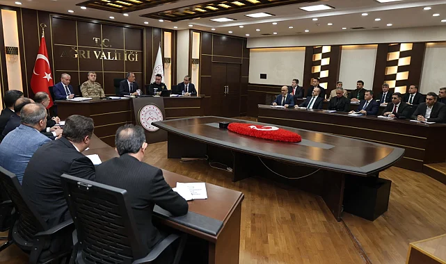 Ağrı Valisi Dr. Önder Bozkurt başkanlığında, okul ve yurtların güvenliğine ilişkin kapsamlı bir değerlendirme toplantısı gerçekleştirildi. İl merkezinde görev yapan ilk, orta ve lise kademelerindeki okul müdürlerinin yanı sıra İl Jandarma Komutanı, İl Emniyet Müdürü, İl Millî Eğitim Müdürü ve Gençlik ve Spor İl Müdürü'nün katılım sağladığı toplantıda, öğrencilerin huzur ve güvenliğini önceleyen başlıklar ele alındı.Nihat AYDIN / AĞRI (İGFA) - Ağrı Valisi Dr. Önder Bozkurt başkanlığında, okul ve yurtların güvenliğine ilişkin kapsamlı bir değerlendirme toplantısı gerçekleştirildi. İl merkezinde görev yapan ilk, orta ve lise kademelerindeki okul müdürlerinin yanı sıra İl Jandarma Komutanı, İl Emniyet Müdürü, İl Millî Eğitim Müdürü ve Gençlik ve Spor İl Müdürü'nün katılım sağladığı toplantıda, öğrencilerin huzur ve güvenliğini önceleyen başlıklar ele alındı.Toplantıda, eğitim kurumları ve yurt çevrelerinde alınan mevcut güvenlik tedbirleri detaylı şekilde değerlendirilirken, kurumlar arası koordinasyonun güçlendirilmesi ve olası risklere karşı alınacak ilave önlemler üzerinde duruldu.Okulların iç ve dış güvenliği kapsamında giriş-çıkış düzeni, çevre denetimleri, kamera sistemleri, ziyaretçi uygulamaları ile servis güzergâhları başta olmak üzere öğrencilerin yoğun bulunduğu alanlar yeniden gözden geçirildi.Ayrıca okul yönetimleri, rehberlik servisleri, öğretmenler, aileler, kolluk birimleri ve ilgili kamu kurumları arasında erken uyarı ve erken müdahale mekanizmalarının daha etkin hale getirilmesi yönünde değerlendirmeler yapıldı.Toplantıda, çocukların güvenliği için gerekli tüm adımların kararlılıkla atılacağı vurgulanırken, hiçbir ihmal alanının karşılıksız bırakılmayacağı ve hiçbir risk unsurunun göz ardı edilmeyeceği ifade edildi. Okullardaki güvenlik tedbirlerinin artırıldığı da toplantının öne çıkan başlıkları arasında yer aldı.