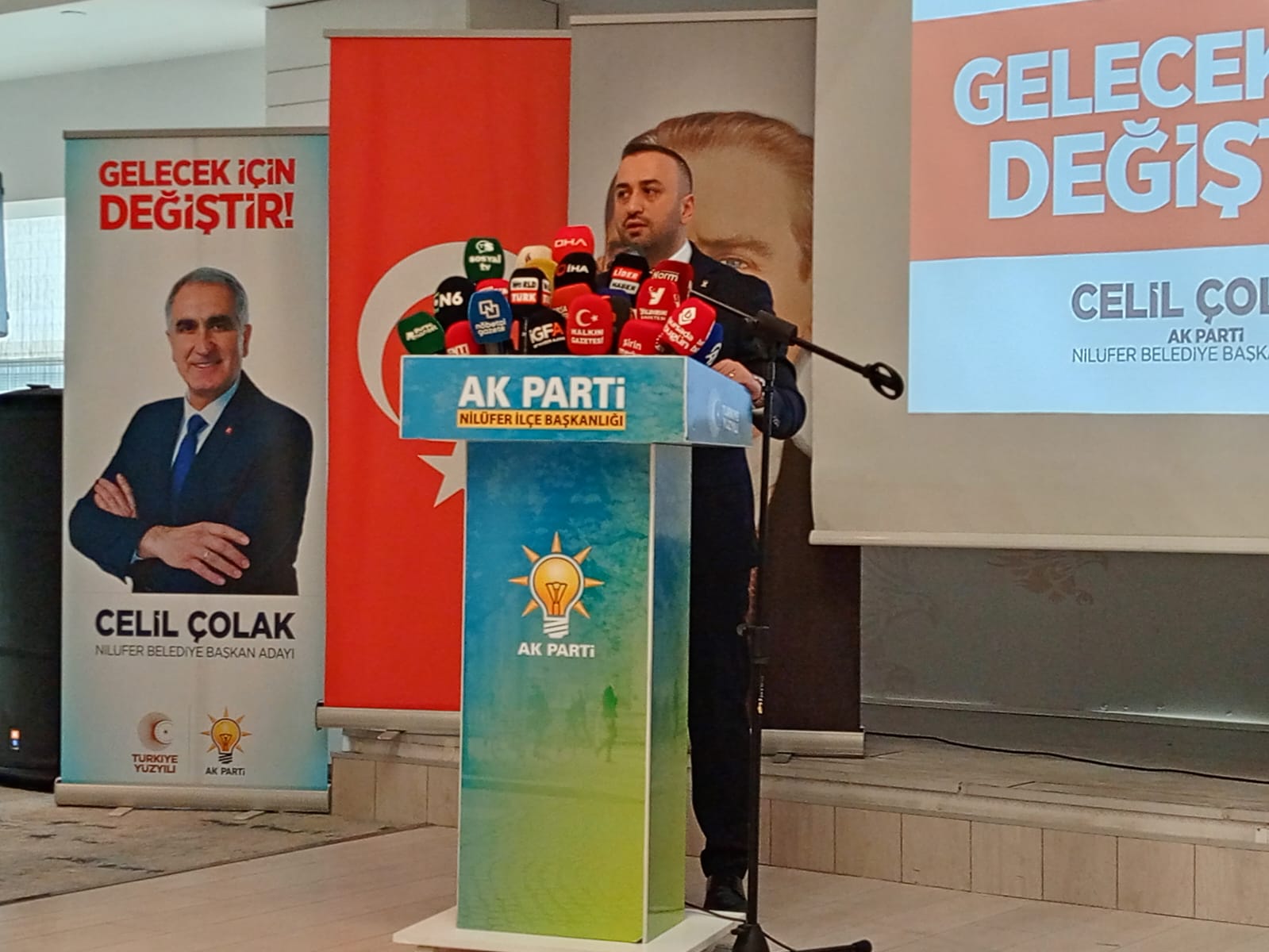"Nilüfer Belediye Başkan adayımız Celil Çolak seçime o kadar odaklanmış Nilüfer'i kazanmak için o kadar istekli ki biz her zaman arkasında olacağız. Bursanın en genç ilçe başkanı olarak göreve geldim. Saha da Nilüfer i adım adım gezdik girilmedik sokak bırakmadık. Türkiye şehirlerini ve belediyelerini gerçek belediyecilik ile buluşturacağız." ifadelerini kullandı.