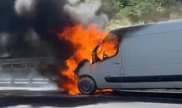 Anadolu Otoyolu Bolu Dağı mevkisinde seyir halinde olan minibüs bilinmeyen bir nedenden dolayı alev aldı. Sefer DEMİR / Haberözel TV DÜZCE (İGFA) - Araç sürücüsü son anda araçtan çıkarak kurtuldu. Yangını gören diğer sürücülerin ihbarı üzerine olay yerine karayolları ve itfaiye ekipleri yönlendirildi.Karayolları ekiplerinin çevre güvenliğini alması sonrasında itfaiye ekipleri yangına müdahalede etti.Araç kullanılamaz hale gelirken ekipler yangın ile ilgili soruşturma başlattı.