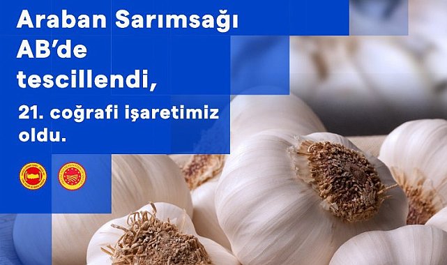 Gaziantep topraklarında yetişen, şifa kaynağı "Araban sarımsağı" Avrupa Birliği'nde tescilli 21. coğrafi işaretli ürün oldu.ANKARA (İGFA) - Sanayi ve Teknoloji Bakanı Mehmet Fatih Kacır, sosyal medya hesabından yaptığı paylaşımda, Türkiye'nin yerel değerlerini korumaya, kayıt altına almaya ve dünya çapında tanıtmaya devam ettiklerini kaydetti."Gaziantep topraklarında yetişen, şifa kaynağı "Araban sarımsağı" Avrupa Birliği'nde tescilli 21. coğrafi işaretli ürünümüz oldu." diyerek AB tescilini duyuran Bakan Kacır, başlattıkları Uluslararası Coğrafi İşaret Seferberliğiyle AB nezdindeki tescil sayısında belirgin bir artış kaydedildiğini belirtti."Bugün itibarıyla tescilli 21 coğrafi işaretimiz bulunurken, 4'ü ilan aşamasında 49 başvurumuzun işlemleri ise devam ediyor" diyen Bakan Kacır, " Kültürümüzü ve değerlerimizi korumaya ve tanıtmaya, ülkemizin marka değerini artıracak çalışmalara devam edeceğiz" dedi.