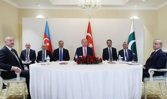 Cumhurbaşkanı Erdoğan, Azerbaycan Cumhurbaşkanı Aliyev ve Pakistan Başbakanı Şerif ile üçlü toplantı yaptıANKARA (İGFA) - Cumhurbaşkanı Recep Tayyip Erdoğan, Şanghay İşbirliği Örgütü 24'üncü Devlet Başkanları Zirvesi için geldiği Kazakistan'ın başkenti Astana'daki temasları kapsamında Azerbaycan Cumhurbaşkanı İlham Aliyev ve Pakistan Başbakanı Şahbaz Şerif ile bir araya geldi.Toplantı, Cumhurbaşkanı Erdoğan'ın konakladığı otelde gerçekleştirildi.Cumhurbaşkanı Erdoğan, toplantının başında karşıladığı Aliyev'e "Bayağı dirisin maşallah." dedi. Aliyev de "Sizi görende." yanıtını verdi.Toplantıda Dışişleri Bakanı Hakan Fidan, Enerji ve Tabii Kaynaklar Bakanı Alparslan Bayraktar, Hazine ve Maliye Bakanı Mehmet Şimşek, Ticaret Bakanı Ömer Bolat, Cumhurbaşkanı Dış Politika ve Güvenlik Başdanışmanı Büyükelçi Akif Çağatay Kılıç da hazır bulundu.