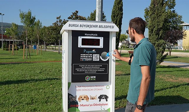 Bursa Büyükşehir Belediyesi, sokak hayvanları için yenilikçi bir projeyi daha devreye aldı. Sokakta su ve yiyecek bulmakta zorlanan can dostları için geliştirilen proje kapsamında kentin farklı noktalarına yerleştirilen mamamatik otomatları, atılan her atık için mama vererek sahipsiz sokak hayvanlarının beslenmesine katkı sağlıyor. Vatandaşların mamamatiklere atacağı her pet şişe, cam şişe ve metal ambalaj atıkları, minik dostlar için mama olarak geri dönüyor. Tamamen güneş enerjisi ile çalışan otomatlar, atık atıldığında sesli olarak vatandaşlara teşekkür ediyor. Sokak hayvanlarının besin ihtiyacının giderilmesi amacıyla geliştirilen proje, aynı zamanda sıfır atık ve geri dönüşüme de dikkat çekiyor.