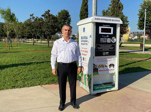 Bursa Büyükşehir Belediyesi Veteriner Hizmetleri Şube Müdürü Semih Öz, sokak hayvanlarının beslenmesi için yıllık 60 ton mama kullandıklarını belirtti. 17 ilçede 168 ayrı noktada besleme yapıldığını söyleyen Öz, mamamatik otomat projesiyle hem temiz çevre bilincinin oluşturulmasını hem de can dostların beslenmesini amaçladıklarını ifade etti. Öz, “Yenilikçi uygulamalar kapsamında plastik atıkların mamaya dönüşmesi için Botanik Park, Merinos Park ve Hüdavendigar Parkı’nda mamamatik uygulamasını başlattık. Can dostlarımızın sıcak havalarda susuz ve aç kalmaması için vatandaşlarımızdan projemize katılmalarını bekliyoruz. Çocuklarımıza da bu projeyi uygulamalı göstererek çevre bilincini aşılayabiliriz. Otomatlarla sokak hayvanları ile hayvanseverler arasında bir köprü de oluşturuluyor” dedi.