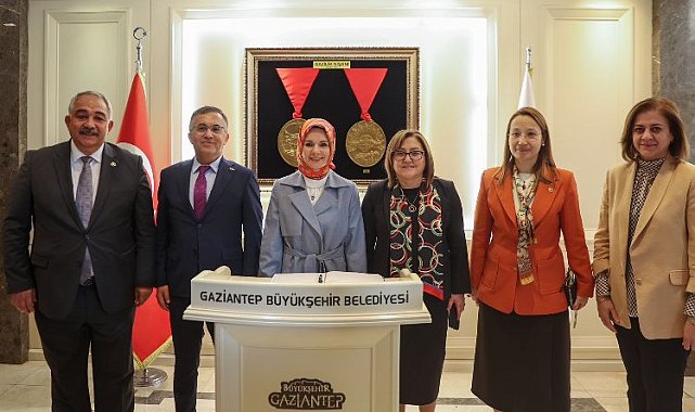 Aile ve Sosyal Hizmetler Bakanı Mahinur Özdemir Göktaş, Gaziantep Büyükşehir Belediye Başkanı Fatma Şahin'i ziyaret etti.GAZİANTEP (İGFA) - Bir dizi temaslar için Gaziantep'e gelen Aile ve Sosyal Hizmetler Bakanı Mahinur Özdemir Göktaş, Büyükşehir Belediyesi'ne ziyarette bulundu. Şeref defterini imzalayan Bakan Göktaş, daha sonra Başkan Fatma Şahin ile görüştü.Görüşmede Başkan Fatma Şahin, hamilelik dönemlerinin başlangıcından doğuma kadar 45 günde bir 12 litre süt desteğinin verildiği "Anneye Süt Bebeğe Can" projesinin detayları hakkında Bakan Göktaş'a bilgi verdi.Öte yandan Başkan Şahin, Tomurcuk projesi, mahalle kreşleri ve medikal malzeme ihtiyacı başta olmak üzere engelli bireylerin günlük yaşamında büyük öneme sahip araçların tamiratının yapıldığı Ortez-Protez Yapım ve Uygulama Merkezi'ne ilişkin sunum yaptı.Görüşmenin sonunda Başkan Fatma Şahin, Bakan Göktaş'a kutnu kumaşı ve kurutmalık hediye etti.