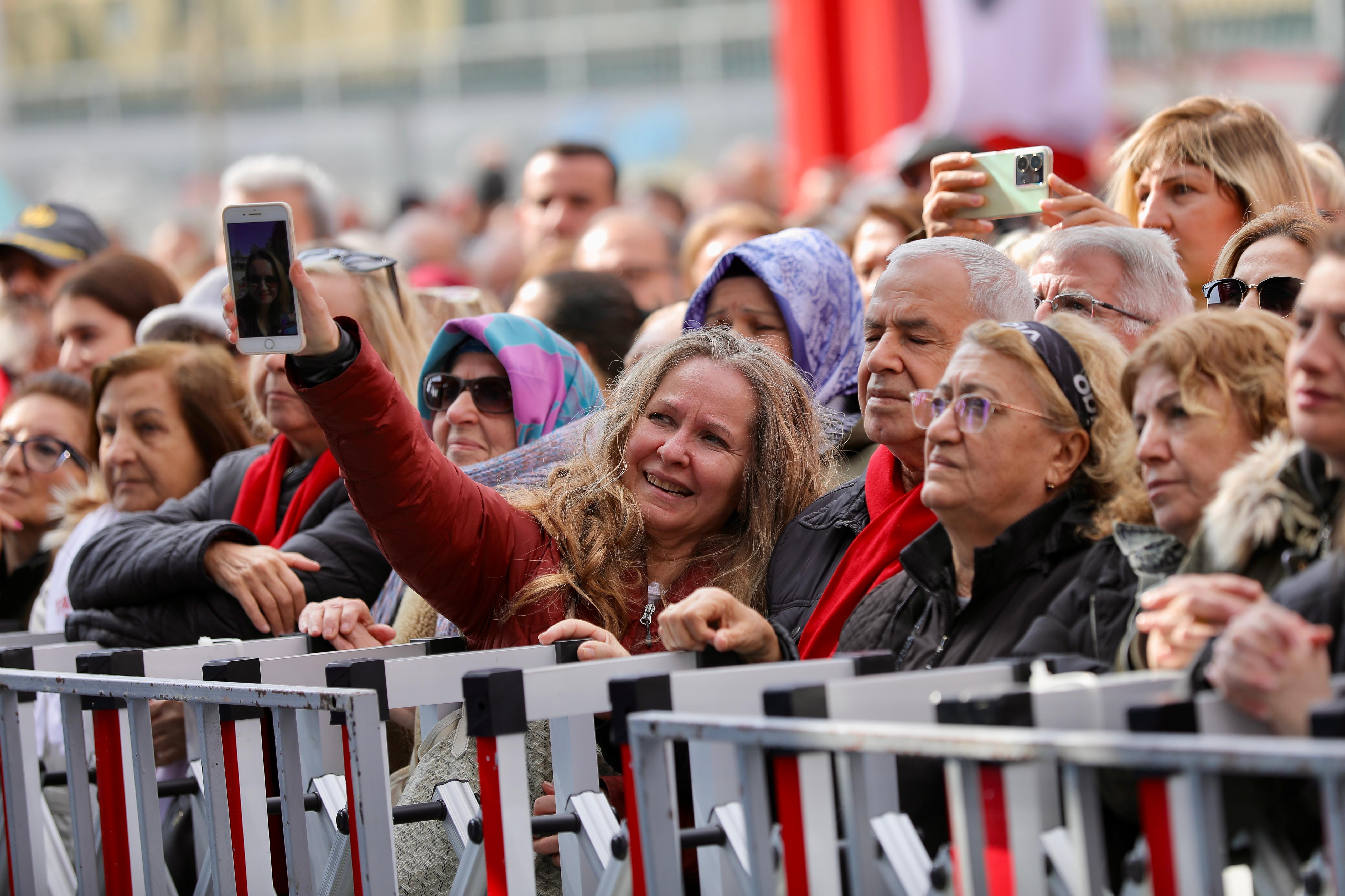 “Bütün bunlar nasıl oluyor biliyor musunuz? Çok iyi bir ekiple, uzmanların, bilim insanlarının yol göstericiliğiyle oluyor. Ekrem İmamoğlu her şeyi bilmez; bilemez zaten. Mümkün değil. Büyük Önder Atatürk'ün dediği gibi; başarmak için çalışkan olmaktan başka hiçbir şeye ihtiyacımız yok. Çok çalıştık. Özgüvenle çalıştık. Bir avuç insan için değil, 16 milyon insan için çalıştık. Bir kişinin tensipleriyle, buyruklarıyla değil; 16 milyonun istek ve talepleriyle hareket ettik. İnsanımızı düşündük. Sevgili dostlar; partizanlığı söküp attık. Bakın ben size bir şey söyleyeyim. Ben, Cumhuriyet Halk Partisi'nin has evladıyım. En çok çalışan insan olmak için de gayret ediyorum. Ben diyorum ki, ‘Ben çok çalışıyorum. En çok çalışan ben olacağım. Ayşegül Başkan diyebilir ki, ‘Hayır Başkanım, ben seni geçeceğim.’ Gurur duyarım. Geçsin. Başkası da geçebilir. Hani biraz zor; onu söyleyeyim de. O konuda iddialıyım. Ama espri tabii. İnşallah geçerler.”