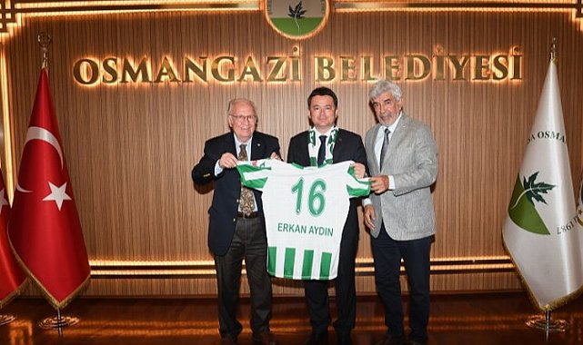 Bursaspor Başkanı Sinan Bür ve Yönetim Kurulu Üyeleri, Osmangazi Belediye Başkanı Erkan Aydın'ı ziyaret etti. Başkan Aydın, Bursaspor'u eski günlerine döndürmek için desteğe hazır olduklarını ifade etti.