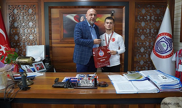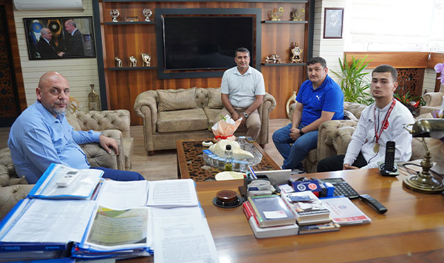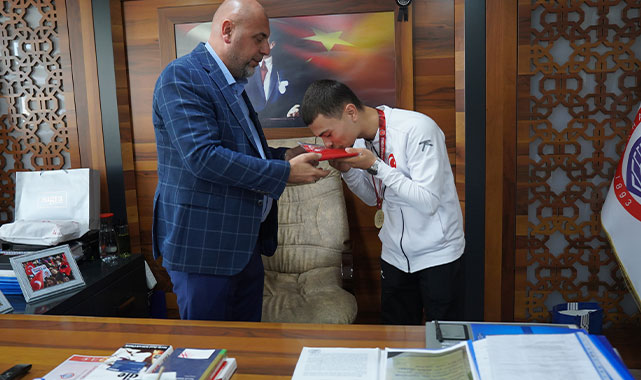 Başkan Aydın, Hamza Onur Yazıcı'yı içten dilekleriyle tebrik ederek, genç sporcunun elde