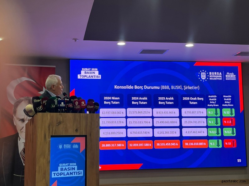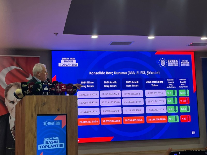 Toplantının sonunda mali verileri de paylaşan Bozbey, büyükşehir belediyesinin borçlarında son bir ayda yüzde 2 oranında düşüş sağlandığını belirtti. Nisan 2024’ten bu yana ise borçlarda toplam yüzde 32’lik bir azalma olduğunu söyledi.
