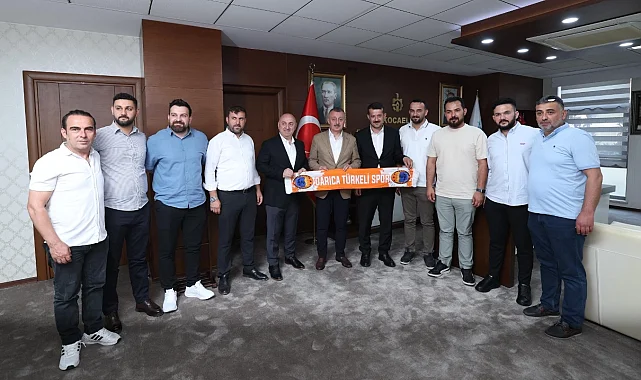 Geçtiğimiz sezon şampiyon olarak Bölgesel Amatör Lig'e (BAL) yükselen Darıca Türkeli Spor Kulübü Başkanı Ferhat Yılmaz ve yönetim kurulu, Kocaeli Büyükşehir Belediye Başkanı Tahir Büyükakın'ı ziyaret etti.KOCAELİ (İGFA) - Gebze'de misafirlerini ağırlayan Kocaeli Büyükşehir Belediye Başkanı Tahir Büyükakın, Darıca Türkeli Spor Kulübü Başkanı Ferhat Yılmaz ve yönetimini kutladı.Ziyarette Darıca Belediye Başkanı Muzaffer Bıyık da yer aldı. Süper Amatör Lig'de geçen sezon şampiyon olan Darıca Türkeli, bu yıl ilimizi BAL'da temsil edecek.Kulüp Başkanı ve yöneticiler, Başkan Büyükakın'a amatör kulüplere desteği için teşekkür ederken, Başkan Büyükakın, görüşmede özellikle gençlerin spora teşvik edilmesini ve altyapıya önem verilmesini kaydetti. Başkan Büyükakın, Darıca Türkeli ve tüm amatör spor kulüplerine başarı diledi.