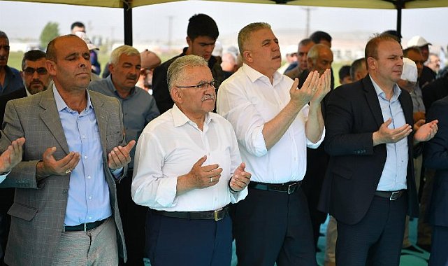 Kayseri Büyükşehir Belediye Başkanı Dr. Memduh Büyükkılıç, Horsana Çayırı'nda güzel bir gelenek olarak yaşatılan yağmur ve şükür duası programına katıldı.Mehmet UZEL / KAYSERİ (İGFA) - Büyükşehir Belediye Başkanı Dr. Memduh Büyükkılıç, göreve geldiği günden bu zamana kadar 5 yıllık sürede kırsalın en ücra köşesinde dokunmadık alan bırakmayarak, hizmetlerine ve yatırımlarına devam ederken, mahalle sakinlerinin de her zaman yanında yer alıyor.Bu kapsamda, Kocasinan ilçesi Horsana Çayırı'nda yağmur ve şükür duası programı gerçekleştirildi.Kocasinan ilçesi Horsana Çayırı mevkiinde gerçekleşen yağmur ve şükür duasına Başkan Büyükkılıç'ın yanı sıra Kayseri İl Müftüsü Yusuf Akkuş, İl Tarım ve Orman Müdürü Bülent Saklav, Kayseri Ticaret Borsası Meclis Başkanı Mehmet İştahlı, Kayseri Ziraat Odaları İl Koordinasyon Kurulu Başkanı Abdulkadir Güneş, Kayseri Damızlık Sığır Yetiştiricileri Birliği Başkanı Günay Çakı, daire başkanları, mahalle muhtarları, çiftçiler ve vatandaşlar katıldı.Namaz sonrası yapılan yağmur duasında Kayseri İl Müftüsü Yusuf Akkuş öncülüğünde dualar edilirken, çiftçiler de ekili alanlarının bereketli olması için dua ettiler. Yağmur duasında ellerini semaya açarak dua ettiklerini belirten Başkan Büyükkılıç da birliğin ve beraberliğin bereket olduğunu ifade etti.Büyükkılıç, tarım ve hayvancılık sektörüne önemli katkılar sağlamaya devam edeceklerini ve her zaman üreten bir şehir olacaklarını vurguladı.