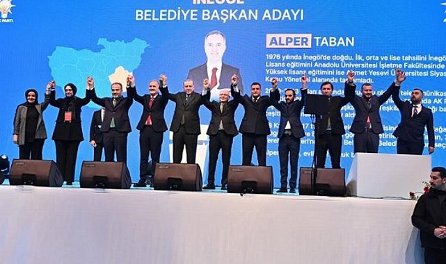 Başkan Alper Taban adaylık süreci ile ilgili yaptığı değerlendirmede, ''AK Parti'mizde mevcut belediye başkanları doğal aday adayıdır. Tekraren bir başvuru yapması gerekmiyor. Parti büyüklerimiz yaptıkları araştırmalar ve değerlendirmeler sonucunda kararını açıklıyor. Genel Başkanımız Cumhurbaşkanımız Recep Tayyip Erdoğan başta olmak üzere partimizin tüm kademelerine, milletvekillerimize ve Büyükşehir Belediye Başkanımıza teşekkür ediyorum. Nitekim bugün Alper Taban ismi zikredilmiş olsa da her bir aday adayı kıymetlidir. Aslında bu İnegöl'ün ne kadar isim zengini olduğunun göstergesidir. Süreç içerisinde tüm aday adayları kendi kampanyalarını yürüttü. Bugün ise tek çatı altında toplanarak tıpkı 18 ve 28 Mayıs tarihlerinde olduğu gibi 31 Mart yerel seçimlerinde de hem Bursa Büyükşehir Belediyesi'nde, hem de İnegöl Belediyesi'nde AK Partimizin ve Cumhur İttifakımızın en güzel sonucu alması için el birliğiyle çalışacağız'' dedi.