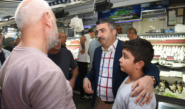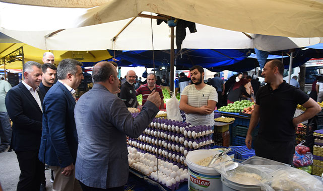 Mahallesi’ni ziyaret edip kurulan semt pazar yerinde pazarcı esnafı ve vatandaşla bir