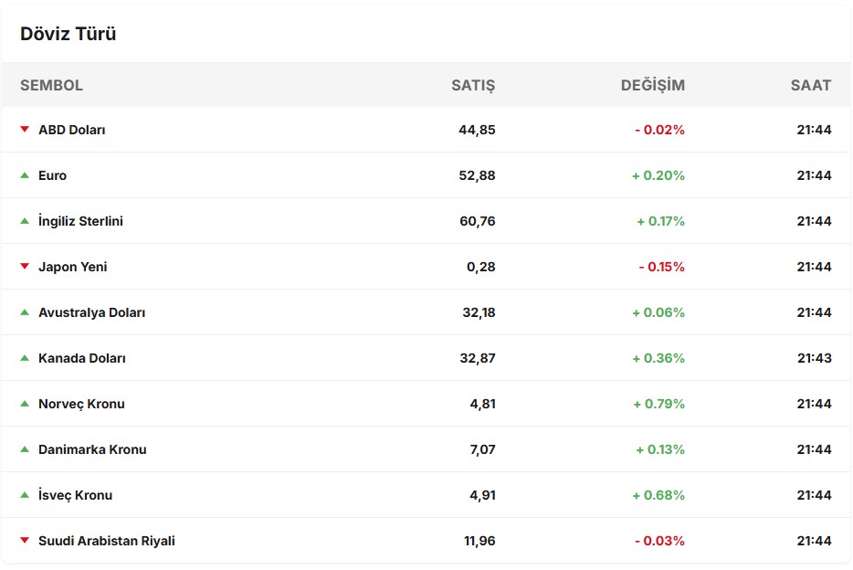 Dolar yeni güne 44,8884 liradan başladı. Gün içinde en düşük 44,8875 lira, en yüksek 44,9353 lira seviyeleri görüldü. Şu sıralar ise 44,9201 liradan işlem görüyor.