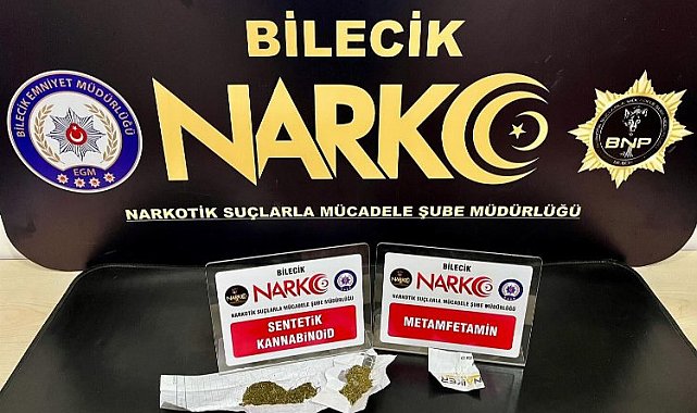 Bilecik Narko ekiplerinin şüphe üzerine durduğu iki şahsın üzerinde 6,5 gram uyuşturucu madde ele geçirilirken, şahıslar hakkında adli işlem başlatıldı.Pazaryeri Gündem / BİLECİK (İGFA)- Bilecik İl Emniyet Müdürlüğü'ne bağlı Narkotik ekiplerin gerçekleştirdiği operasyonlarda 2 şüpheli şahıs yakalandı.Şahısların üzerlerinde yapılan aramalarda 6,01 gram Sentetik Kannabinoid(Bonzai), 0,53 gram Metamfetamin isimli uyuşturucu madde ele geçirildi.Şahıslara "Kullanmak İçin Uyuşturucu Madde Satın Almak, Kabul Etmek Veya Bulundurmak (TCK 191)" suçu kapsamında yasal işlem başlatıldı.