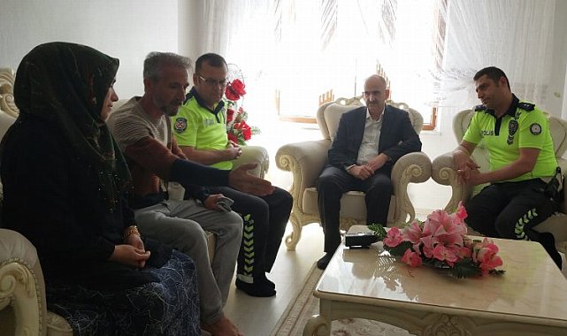 Trafik Haftası etkinlikleri kapsamında Bingöl İl Emniyet Müdürlüğü Trafik Tescil ve Denetleme Şube Müdürlüğü programlarına devam ediyor.BİNGÖL GÜNCEL TV / BİNGÖL (İGFA) - Trafik polisleri, 5 ay önce kent merkezinde trafik kazasında hayatını kaybeden Diyar Sönmez'in (24) ailesini evlerinde ziyaret etti. Aileyi yalnız bırakmayan polis ekipleri, Diyar Sönmez'in anne ve babasıyla da sohbet etti. Ziyaretten duydukları memnuniyeti dile getiren aile, polis ekiplerine teşekkür etti.