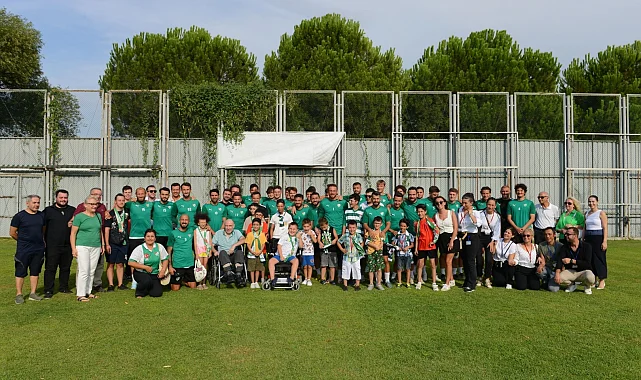 Nilüfer Belediyesi Bizim Ev Engelliler Sosyal Yaşam Destek Merkezi katılımcıları yaklaşan yeni sezon öncesi Bursaspor tesislerini ziyaret ederek, futbolculara başarı dilediler.BURSA (İGFA) - Bizim Ev Engelli Sosyal Yaşam Destek Merkezi katılımcıları, Bursaspor Özlüce İbrahim Yazıcı Tesisleri'ni ziyaret ederek bu yıl 3. Lig 1. Grup'ta bir üst lige çıkma mücadelesi verecek olan Bursaspor oyuncuları ve teknik ekibiyle tanışma fırsatı buldular. Yaklaşan yeni sezon öncesi hazırlıklarını yoğun bir tempoda sürdüren Bursasporlu futbolcular, özel gereksinimli çocuklarla yakından ilgilenerek, birlikte idman sahasına çıktılar. Futbolcuların verdiği hediyeler çocukların yüzlerini güldürürken, Bursasporlu oyuncular da bu anlamlı ziyaretle yeni sezon öncesi moral depoladı.Çocuklar, Bursasporlu futbolculara başarılar dilerken, oyunculardan ve teknik ekipten iyi bir sezon sözü aldılar.