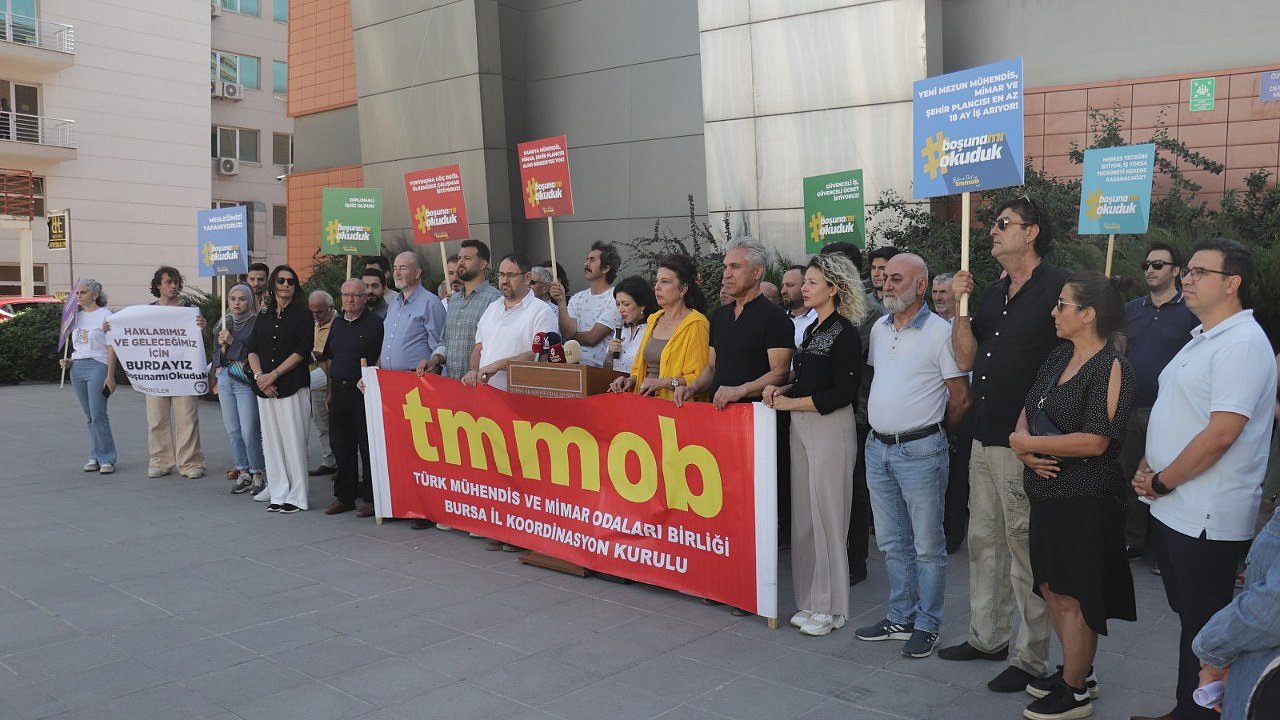 Türk Mühendis ve Mimar Odaları Birliği (TMMOB) Bursa İl Koordinasyon Kurulu (İKK), ‘19 Eylül Mühendis, Mimar, Şehir Plancıları Dayanışma Günü’ nedeniyle yaptığı basın açıklamasında “Boşuna mı okuduk?” diye sordu.TMMOB Bursa İKK Sekreteri Şirin Rodoplu Şimşek tarafından okunan ve İKK bileşeni akademik oda başkanları ile temsilcilerinin katıldığı basın açıklamasında, “Üzülerek görüyoruz ki, bugün geldiğimiz nokta hem bizler için hem halkımız için daha da zor koşullara davet çıkarıyor. İşsizlik, hayat pahalılığı, düşük ücretler, güvencesizlik, özlük hakları ve örgütlenme sorunları ülkemizde çalışan mühendis, mimar ve şehir plancılarının hala en öncelikli sorunları olmaya devam ediyor” dendi.