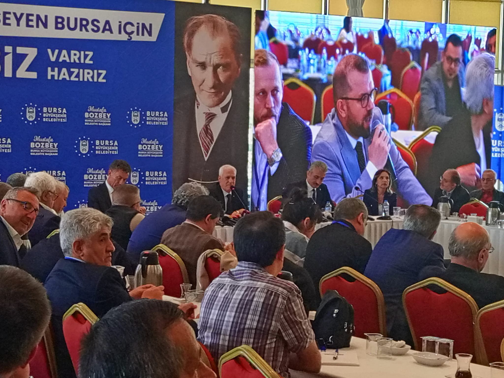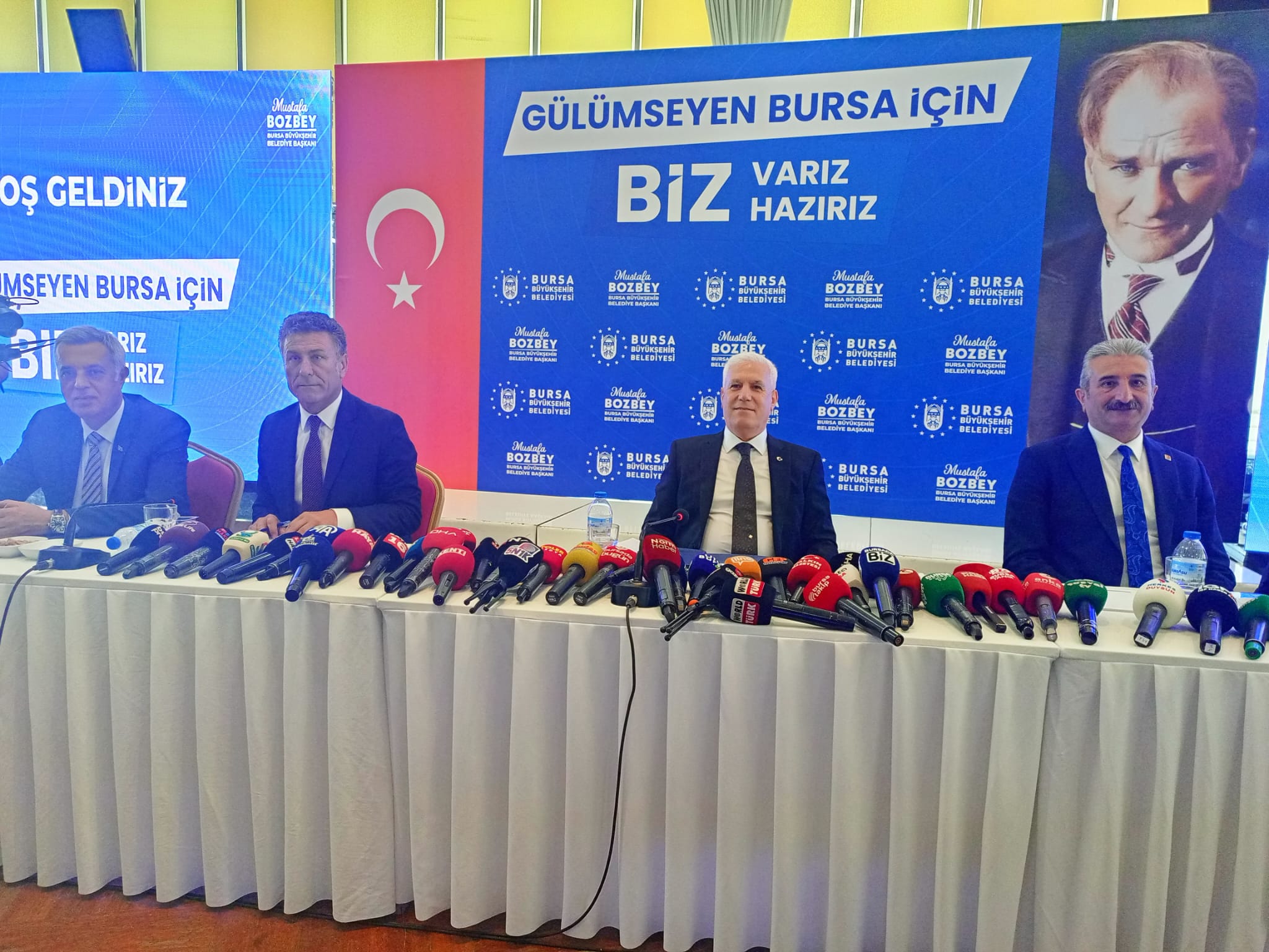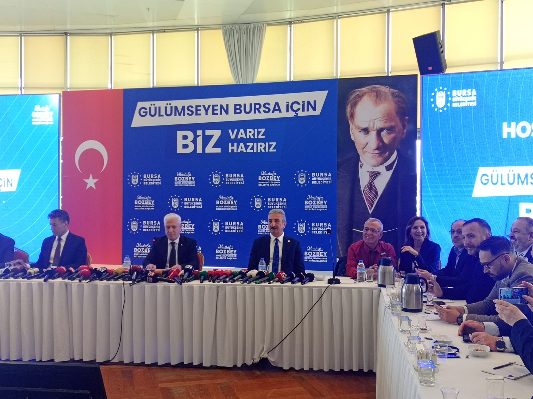 "Birçok büyükşehirde seçilmiş belediye başkanları mazbatalarını birkaç gün içinde kısa sürede almışlardır. Ancak bizim mazbata sürecimiz biraz uzakdı. Belirsizdi ve bekletiliyordu. Bu durum bizim Bursalı hemşehrilerimizle buluşmamızı ve çalışmaya başlamamızda engelledi. Mazbatamızı 9 günlük Ramazan Bayramı'nın resmi olarak başladığı an yani 5 Nisan 2024 Cuma günü saat 18.00' da BUSKİ'de düzenlenen bir tören ile bize verildi. Ertesi gün yani 6 Nisan 2024 Cumartesi günü de Bursa Belediyemizin tarihi mekanı olan tarihi belediye binasında gerçekleşen törenle nihayet belediye hizmetlerine başlamak için orada görevi teslim almıştım. Hemen ardından resmi tatil, bayram tatili demeksizin ekibimizle çalışmalarımıza başladık. Bu belirsizlik sürecini kendi çıkarları için kullanan işten tazminatlarını alıp çıktılar. Talihlerini yaptıranlar içeride bir takım işlemleri sürdürenleri biliyoruz ve gerekeni de yapacağız. Hiç kuşkunuz olmasın. Yaşanan bu gelişmelerin sizlerin de vicdanlarını yaraladığını biliyorum. Merak etmeyin değerli Bursalılar, sevgili basın mensupları, arkadaşlarım. Burada biz olduğumuz sürece burada Mustafa Bozbey olduğu sürece Bursalının hakkı, hukuku göz ardı edilmeyecek. Göreve geldiğimiz gün söz verdiğimiz suya yüzde 25 indirimini hemen yansıttık. Ben burada meclis üyelerimzie çok teşekkür ederim. "