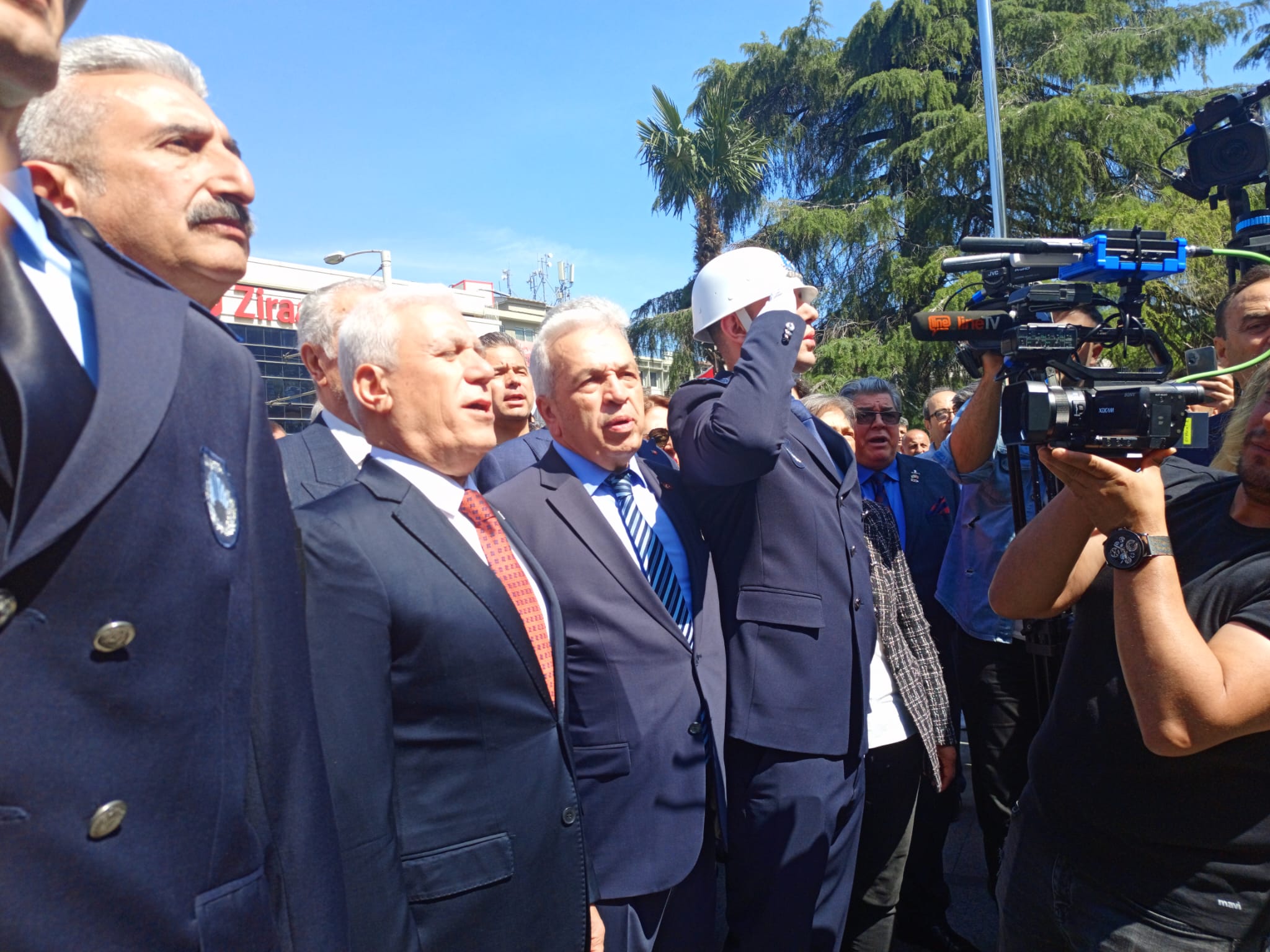 Çelenk bırakma töreninden önce Atatürk Anıtı önünde başta Mustafa Kemal Atatürk olmak üzere bütün şehitlerimiz için saygı duruşunda bulunuldu ve İstiklal Marşımız okundu.