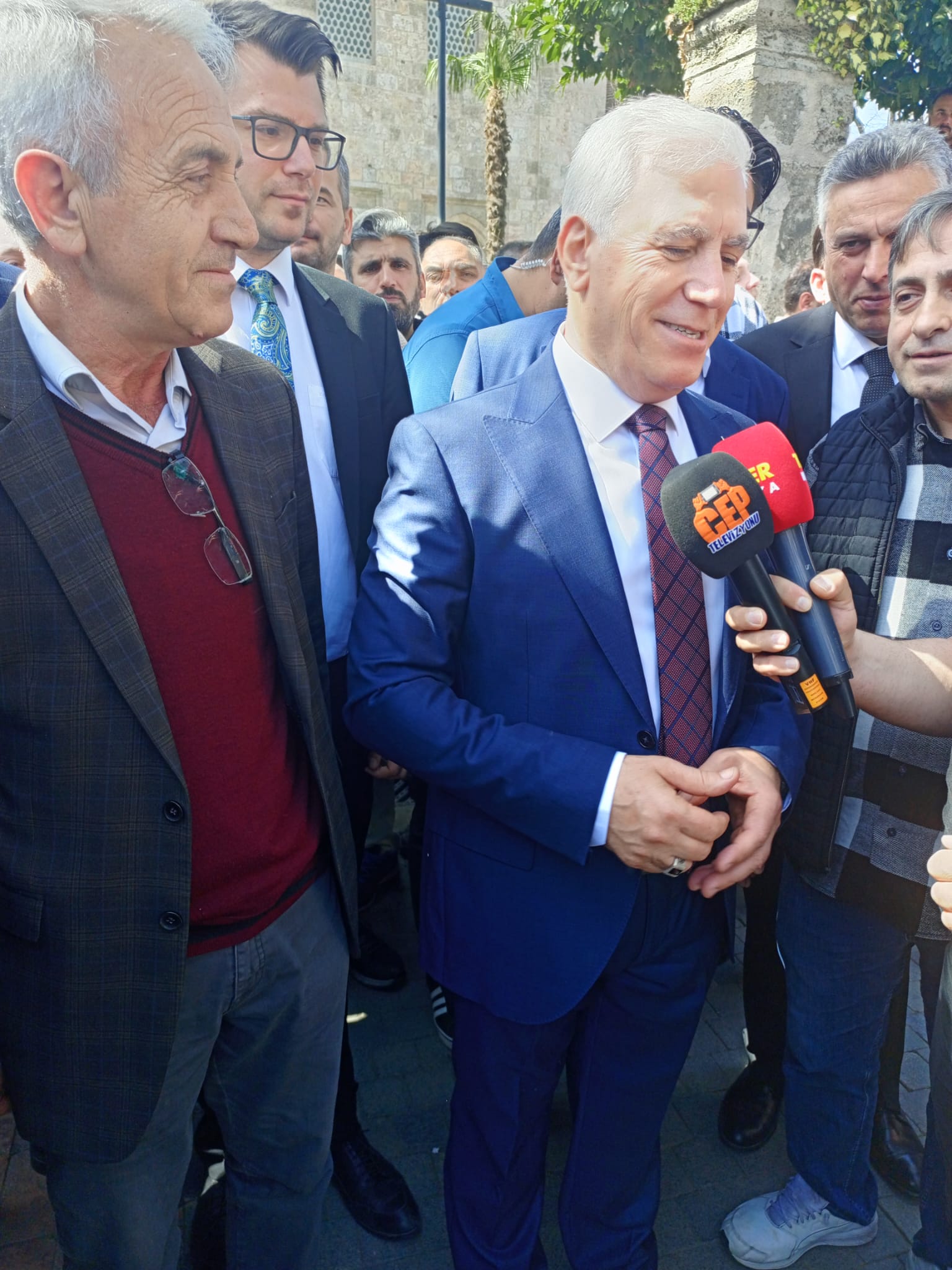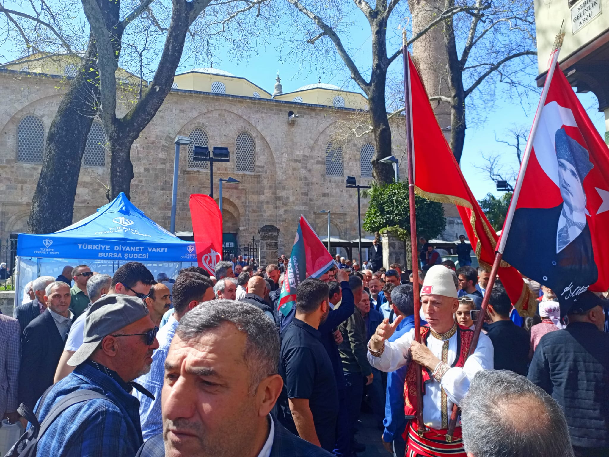 CHP Bursa Büyükşehir Belediye Başkan adayı Mustafa Bozbey'e Ulucami ziyaretinde CHP Osmangazi Belediye Başkan Adayı Erkan Aydın, CHP Bursa İl Başkanı Nihat Yeşiltaş, CHP Osmangazi İlçe Başkanı Cengiz Çelikten, CHP Yıldırım Belediye Başkan Adayı Mehmet Önder Mutlu eşlik etti.