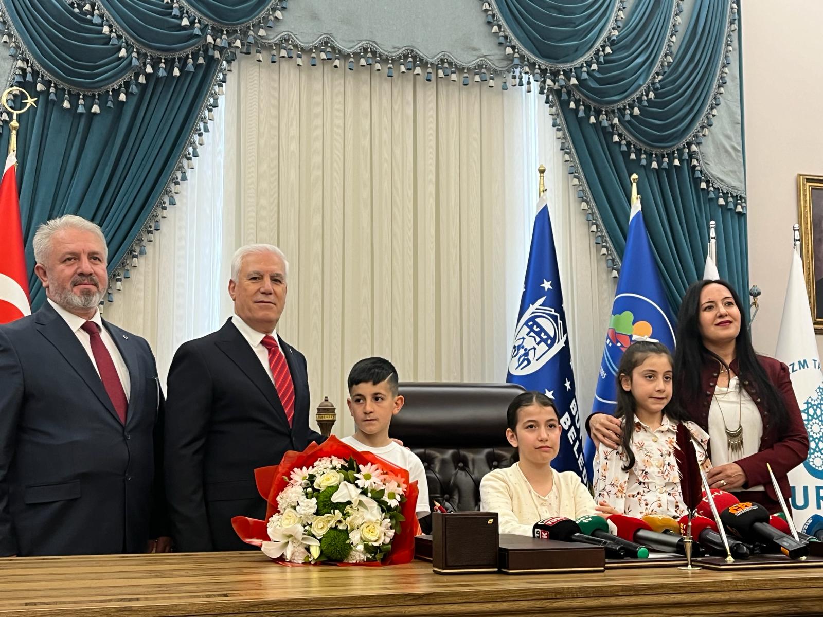 Başkanlık koltuğuna oturan Kesmes: "Çocukları yarının büyükleri olarak gören ve bu günü çocuklara emanet eden Gazi Mustafa Kemal Atatürk'e teşekkür ederim. Ülkemizde çocuklar eşit haklara sahip olmalı çocukların sosyal aktivitelerini yerine getirebikecejleri sosyal tesisler yapılmalı. Ülkemiz deprem kuşağında olan bir ülke kentsel dönüşüme yönelik bir çalışma yapılmalıdır. Bursa'yı yemyeşil bir Bursa olarak görmek istiyoruz." dedi.