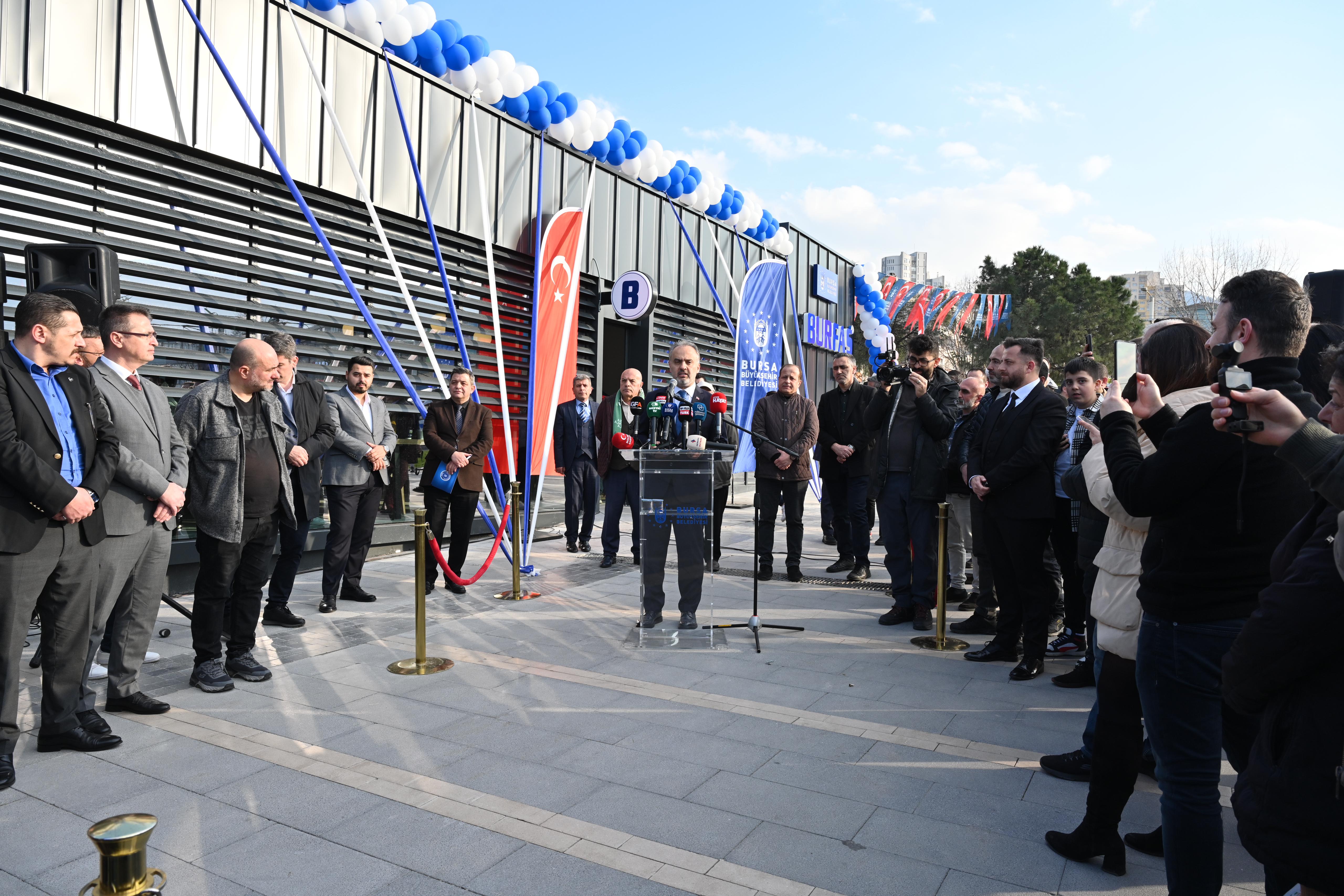 Sosyal tesislerinde yılda ortalama 3 milyon kişiyi ağırlayan Bursa Büyükşehir Belediyesi iştiraklerinden Burfaş, 'sabahları kahve içmeden kendime gelemiyorum' diyenleri veya öğle arasında arkadaşlarla kahve sohbetinden taviz vermeyenleri, kısacası tüm kahve tutkunlarını ‘hızlı kahve konsepti’ mekanlarıyla buluşturmaya devam ediyor. Filistin'de savaş suçlarına her geçen gün yenilerini ekleyen İsrail'e destek veren bu sektörde faaliyet gösteren çok uluslu şirketlere tepki gösterip, boykot kararı alan vatandaşların talepleri üzerine hayata geçen proje ile Bursalılar, aynı hizmeti daha kaliteli ve ekonomik olarak alıyor. İlki Tarihi Çarşıbaşı Meydanı’nda, ardından Eski Stadyum Millet Bahçesi ve Merinos Parkı’nda açılan Burfaş Kafe’nin dördüncü şubesi, düzenlenen törenle Kent Meydanı’nda açıldı. Törene, Bursa Büyükşehir Belediye Başkanı Alinur Aktaş’ın yanı sıra MHP İl Başkanı Muhammet Tekin, AK Parti İl Başkanvekili Ufuk Ay, Burfaş Genel Müdürü Ömer Furkan Banaz, meclis üyeleri, muhtarlar ve vatandaşlar katıldı.