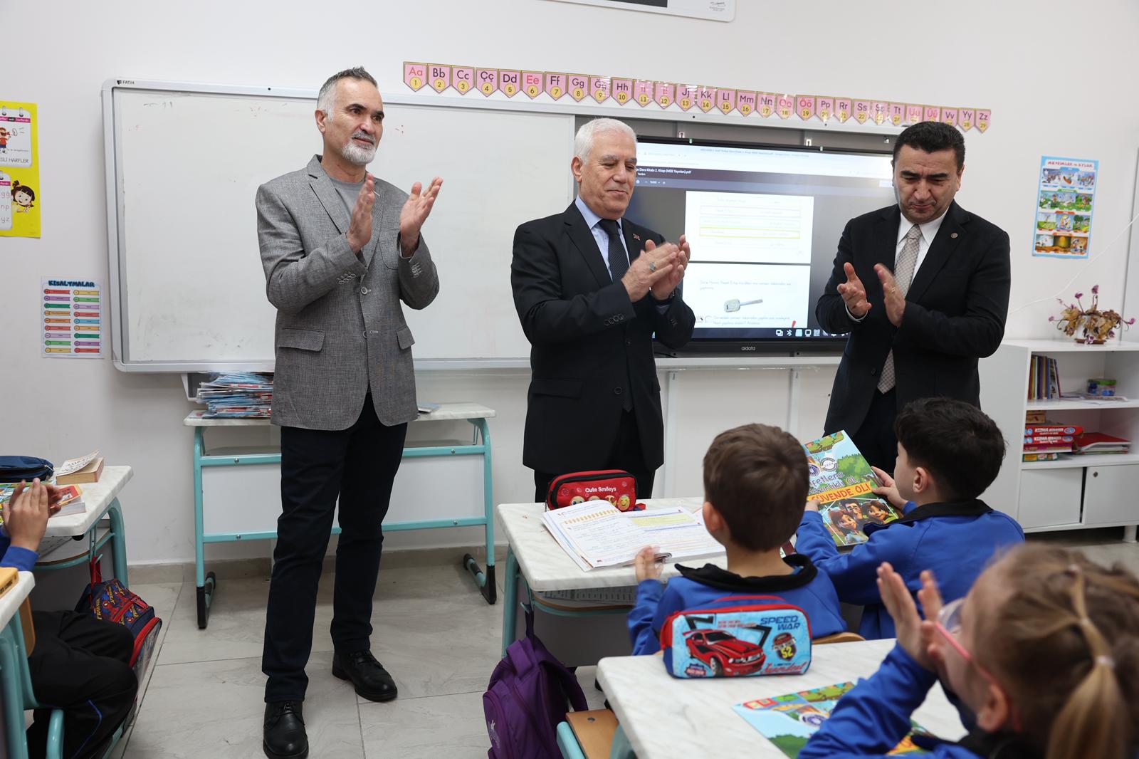 Bursa Büyükşehir Belediye Başkanı Mustafa Bozbey, okulu ziyaret ederek kütüphanede yapılan çalışmaları inceledi. Daha sonra sınıfları gezen Başkan Bozbey, öğrencilere Büyükşehir Belediyesi’nin afet bilincini artırmaya yönelik hazırladığı boyama kitaplarını hediye etti. Çevre bilinci ve su tasarrufu konusunda da öğrencilerle sohbet etti.