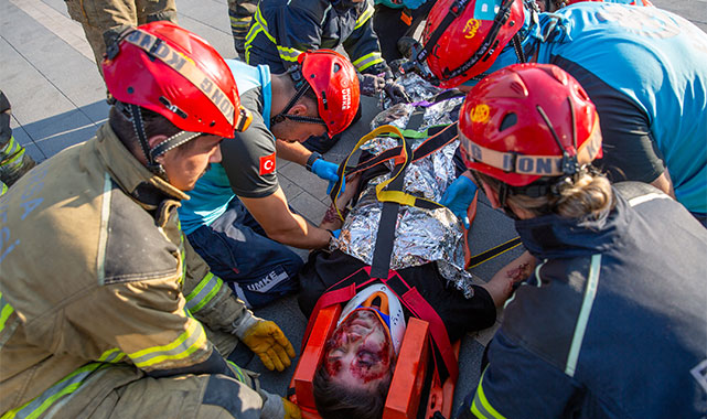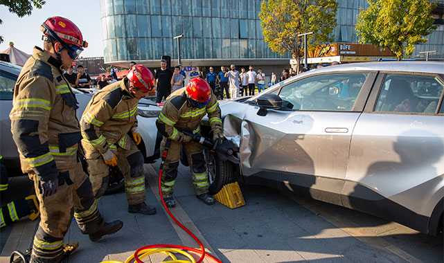 Bursa Büyükşehir Belediyesi’nin ana hizmetlerinden birisini yürüten ve dışa yansıyan yüzü olan İtfaiye Daire Başkanlığı, olaylara kısa sürede müdahale eden uzman ekipleriyle vatandaşa güven veriyor. İtfaiye Teşkilatı’nın 310. kuruluş yıldönümü ve İtfaiye Haftası kapsamında Büyükşehir Belediyesi İtfaiye ekipleri tarafından Kent Meydanı’nda yaralı kurtarma tatbikatı gerçekleştirildi. UMKE ekiplerinin de yer aldığı tatbikatta, senaryo gereği seyir halindeki iki elektrikli otomobil çarpıştı. Alınan ihbar üzerine kısa sürede itfaiye ve UMKE ekipleri olay yerine intikal etti. Kaza sonrası aracın altında kalan ve araçların içerisinde sıkışan yaralılar, sağlık ekipleri tarafından durumları kontrol edildikten sonra itfaiye ekipleri tarafından kurtarıldı. Otomobillerin elektrikli olması sebebiyle büyük bir titizlikle müdahale eden itfaiye ekipleri, yaralıları kurtardıktan sonra sağlık ekiplerine teslim etti. Aksiyon filmlerini aratmayan görüntülerin ortaya çıktığı tatbikat, çevredeki vatandaşlar tarafından büyük ilgiyle takip edildi. Yaralıların araçlardan başarıyla kurtarılmasını izleyen vatandaşlar, itfaiye ve UMKE ekiplerini alkışlarla tebrik etti.