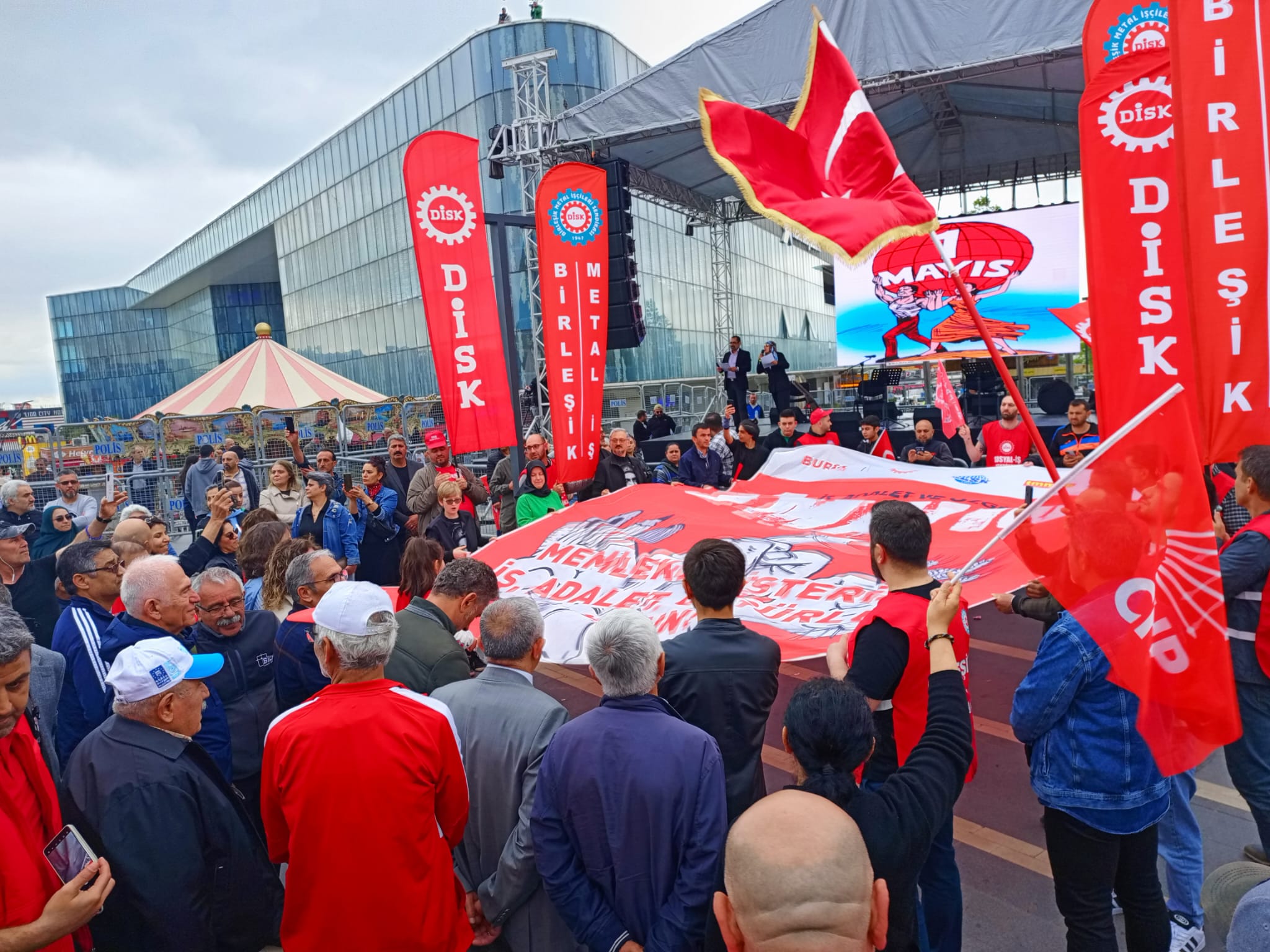 1 Mayıs İşçi Bayramında Millet Bahçesi caddesinde bir araya gelen sivik toplum örgütleri gerçekleştirdiği yürüyüş ile Fomara caddesinde toplandı. Fomara caddesinde devam eden kutlamalarda bir araya gelen işçiler halay çekerek 1 Mayıs İşçi Bayramını kutladılar. Kutlamalar sırasında 'Kapitalizm kirletir' 'Kadın Öğretmenler Ucuz Emekçi Sermayesi Değildir' 'Sizlerin sarayları varsa bizimde sokaklarımız ve meydanlarımız var' pankartları ile sloganlar atıldı.