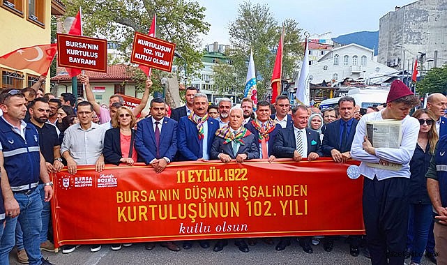 GazeteAbc/Adiviye ElbaşBursa Büyükşehir Belediyesi 11 Eylül 1922 yılında Bursa'nın Düşman İşgalinden kurtuluşunu kutlamak için Setbaşı Köprüsünden başlayan ve Bursa Büyükşehir Belediyesi Tarihi Binada son bulan kortej yürüyüşü gerçekleşti. Gerçekleşen yürüyüşe Bursa Büyükşehir Belediye Başkanı Mustafa Bozbey, CHP Bursa İl Başkanı Nihat Yeşiltaş, CHP Osmangazi İlçe Başkanı Cengiz Çelikten katılım gösterdi.