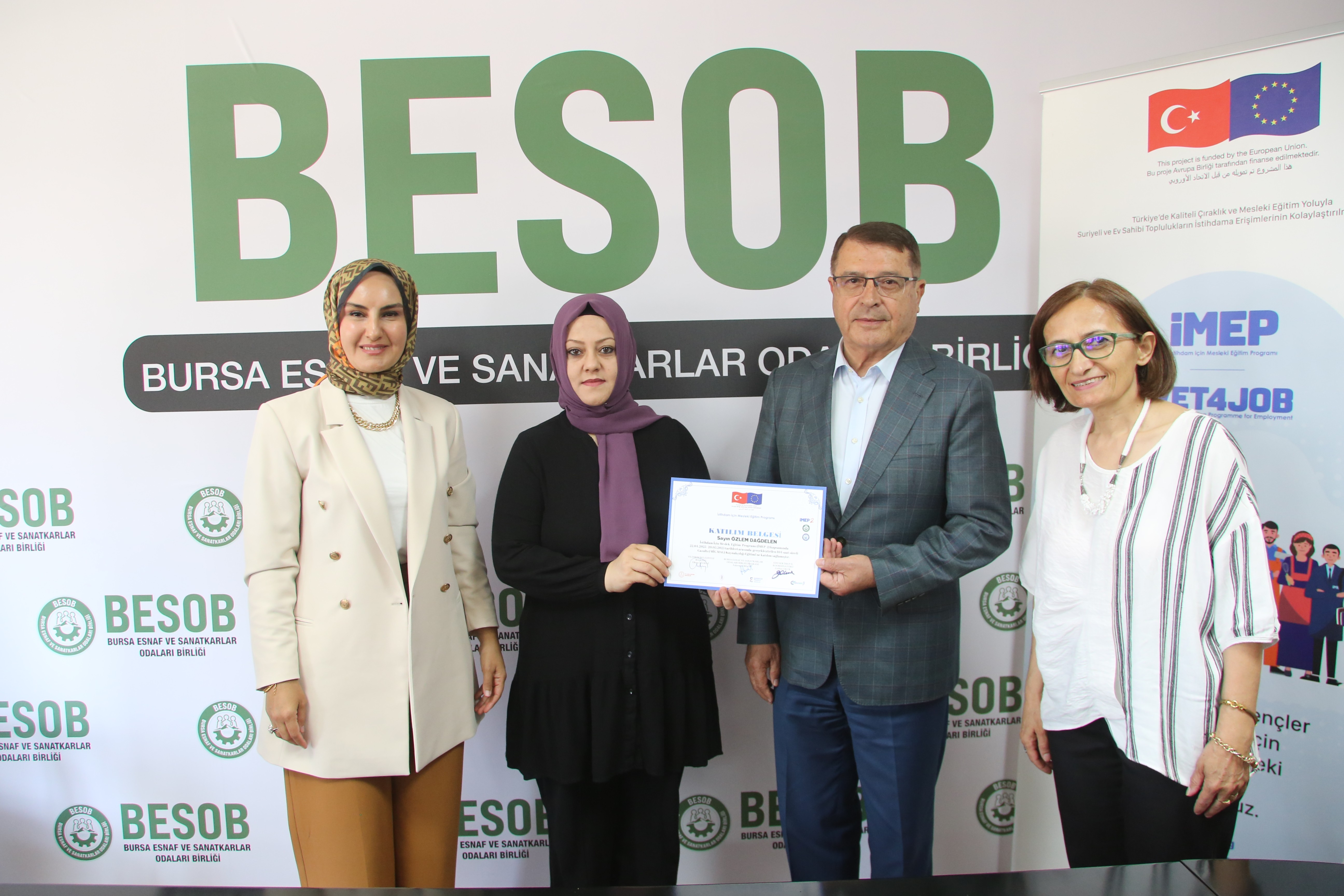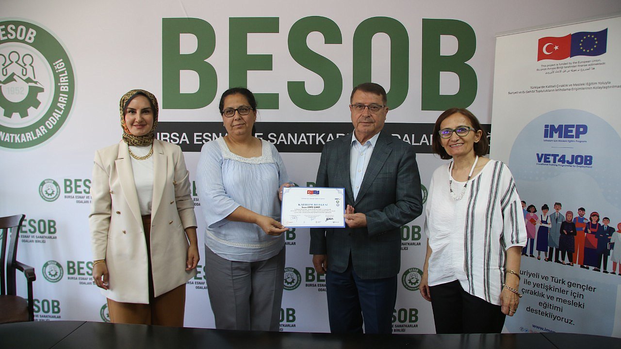Akpınar, Saha Koordinatörü Sezgin Akpınar, İMEP Bölge Koordinatörü Aydın Türkoğlu, Bursa Demir ve Madeni İşler Sanatkarları Esnaf Odası Başkanı İzzet Güven ve Gazaltı Kaynakçılığı ''MİG- MAG'' eğitimlerini başarıyla tamamlayan kadın kaynak ustaları BESOB’u ziyaret etti.