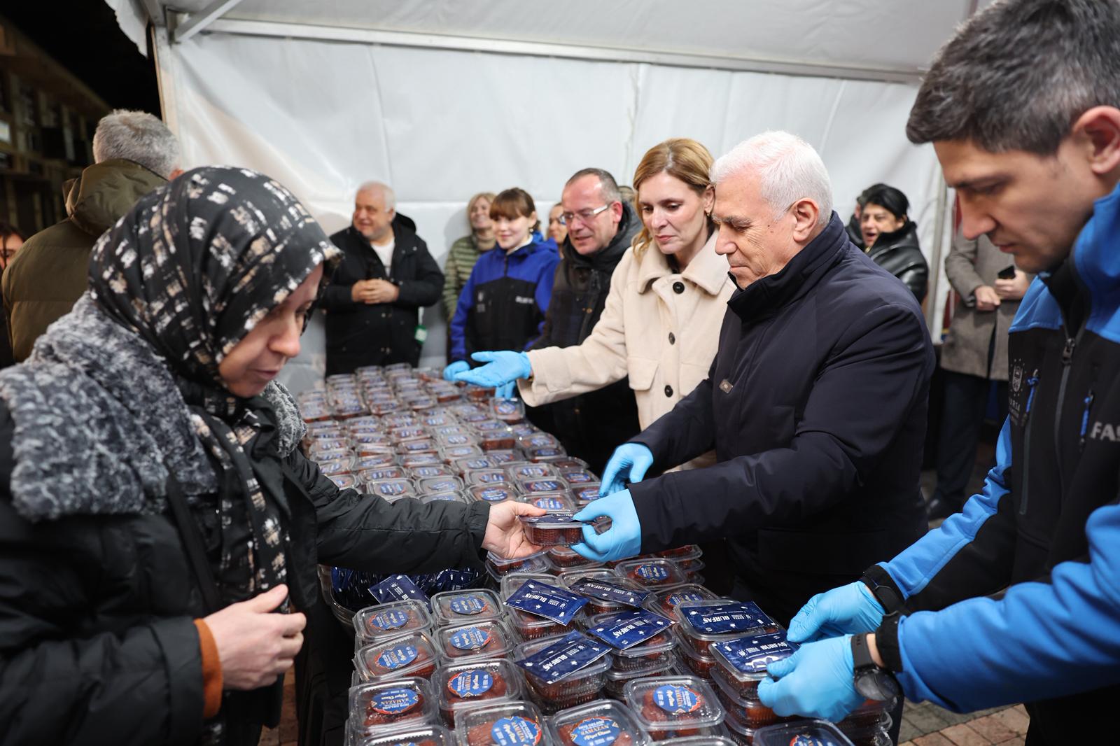 Bursa Büyükşehir Belediye Başkanı Mustafa Bozbey, eşi Seden Bozbey ile birlikte Ramazan ayının başlangıcında Ulu Cami’de kılınan ilk teravih namazının ardından vatandaşlara tatlı ikramında bulundu.