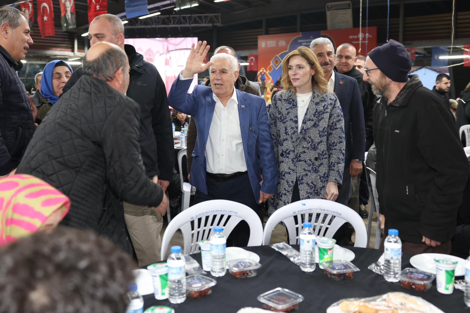 Başkan Bozbey ve eşi, Osmangazi ilçesindeki Fatih ve Çiftehavuzlar Mahallesi Kapalı Pazar Alanı’nda düzenlenen iftar programına katıldı.