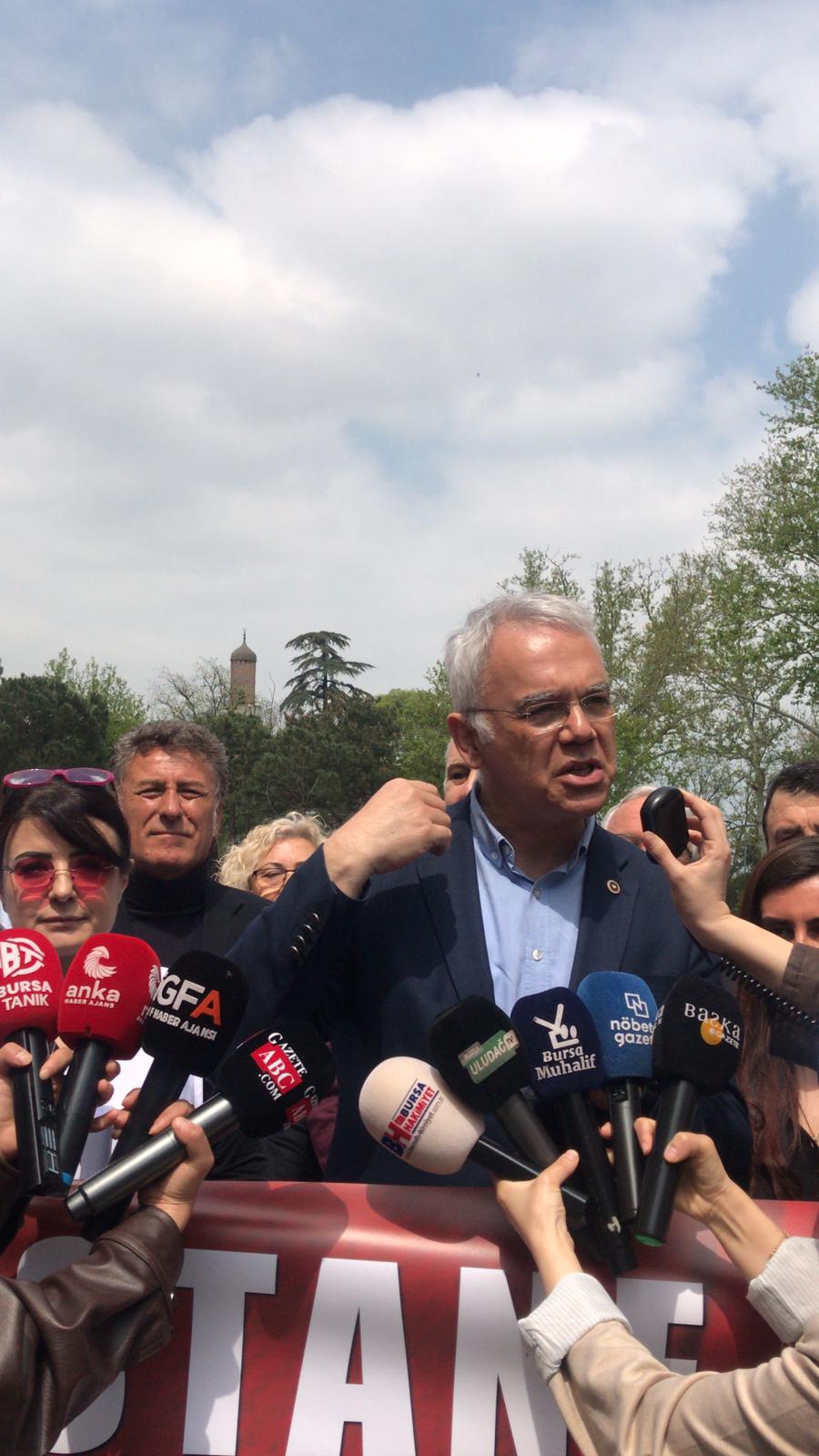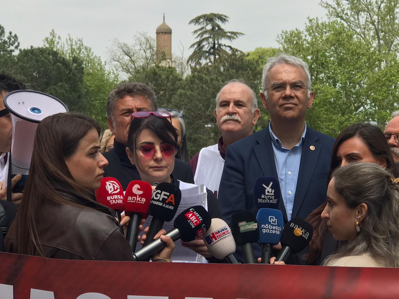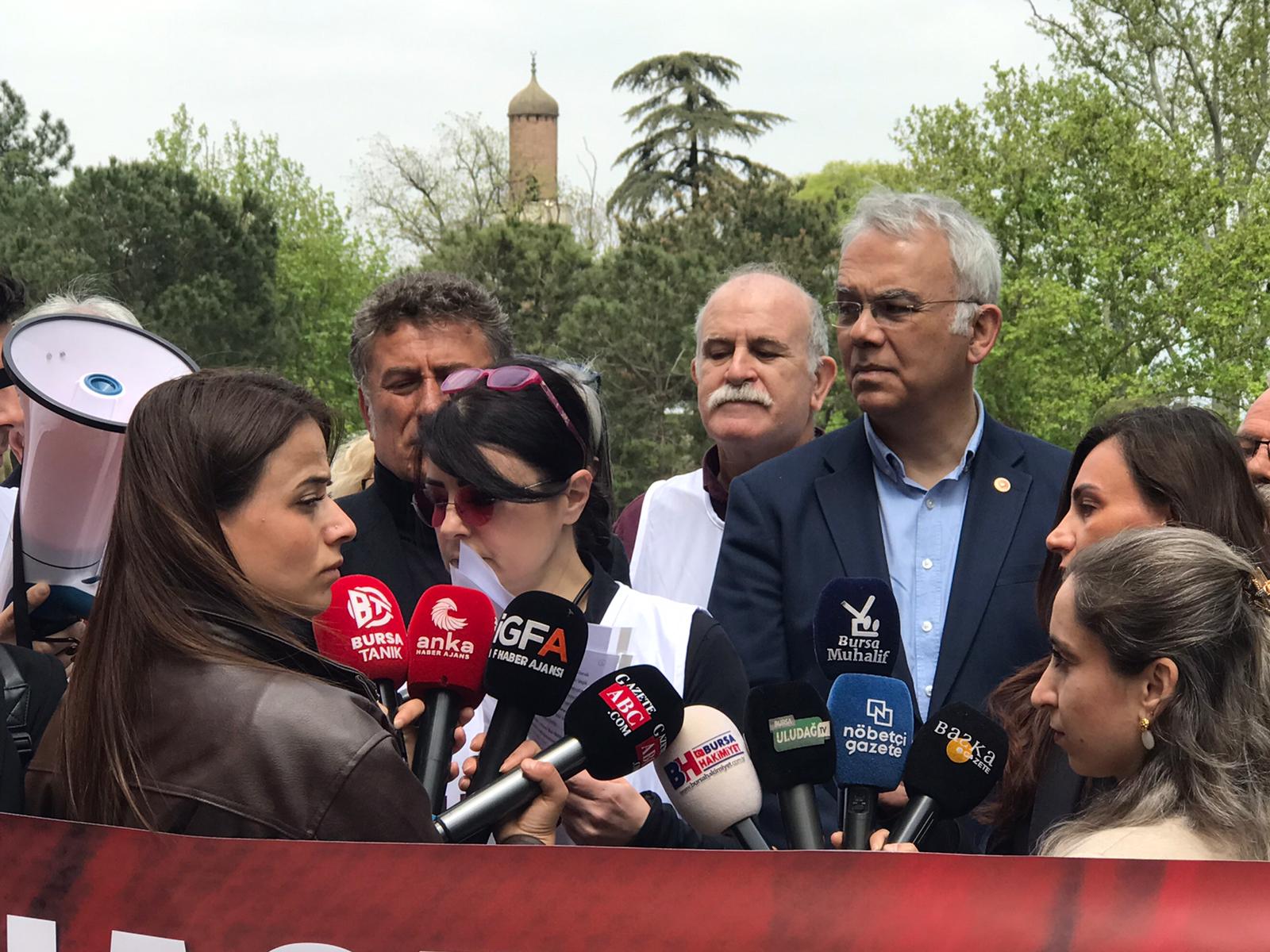 Eski Bursa diye nitelendirdiğimiz Bursa’nın kalbi olan bu bölgede yaşayan nüfusun burada ikamet etmesinin en önemli sebeplerinden biri hastaneye kolay ulaşabilmektir. Ateşi olan bir çocuğu, bel ağrısından kıpırdayamayan bir erişkini ya da acil sağlık sorunu olan yaşlı bir vatandaşı buradan alıp bu trafikte şehir hastanesi gibi aşırı büyük ve hekimlerin bile içinde kaybolduğu dev hastanelere götürmeye çalışmak sorunu çözmek bir yana daha da içinden çıkılamaz hale getirecektir. Ekonomiye kaynak bulmanın yolu hastane yerlerini satışa çıkarmak değildir. Ücretsiz bir şekilde devlet tarafından verilmesi gereken sağlığa ulaşım hakkı bu satışlarla gasp edilmektedir. Halkımızı zaten aylarca randevu sırası beklemek zorunda bırakan mevcut durum daha da kötüleşerek parası olanın özel hastanelerden hizmet alabildiği, olmayanın alamayacağı bir konuma getirecektir. Bursa Tabip Odası üyesi hekimler olarak görev ve sorumluluklarımızdan birinin yalnızca hasta tedavi etmek değil halkın sağlık hakkını korumak olduğunun bilincindeyiz.Bu nedenle burada bulunan meslek odaları, emek ve sendika örgütleri ve vatandaşlarımızla birlikte mücadele etmeye devam edeceğiz. Bugün burada yalnızca bir hastane yerini değil, bu kentin sağlık hakkını, kamusal vicdanını ve ortak geleceğini savunuyoruz. Bu topraklarda sağlık bir ticaret konusu değildir. Hastane bir yatırım aracı değildir. İnsan hayatı piyasa hesabına sığmaz. Buradan bir kez daha söylüyoruz. Bu karar yanlıştır ve kabul edilemez. Sağlık hakkı savunulmadan hiçbir hak güvende değildir.” dedi.