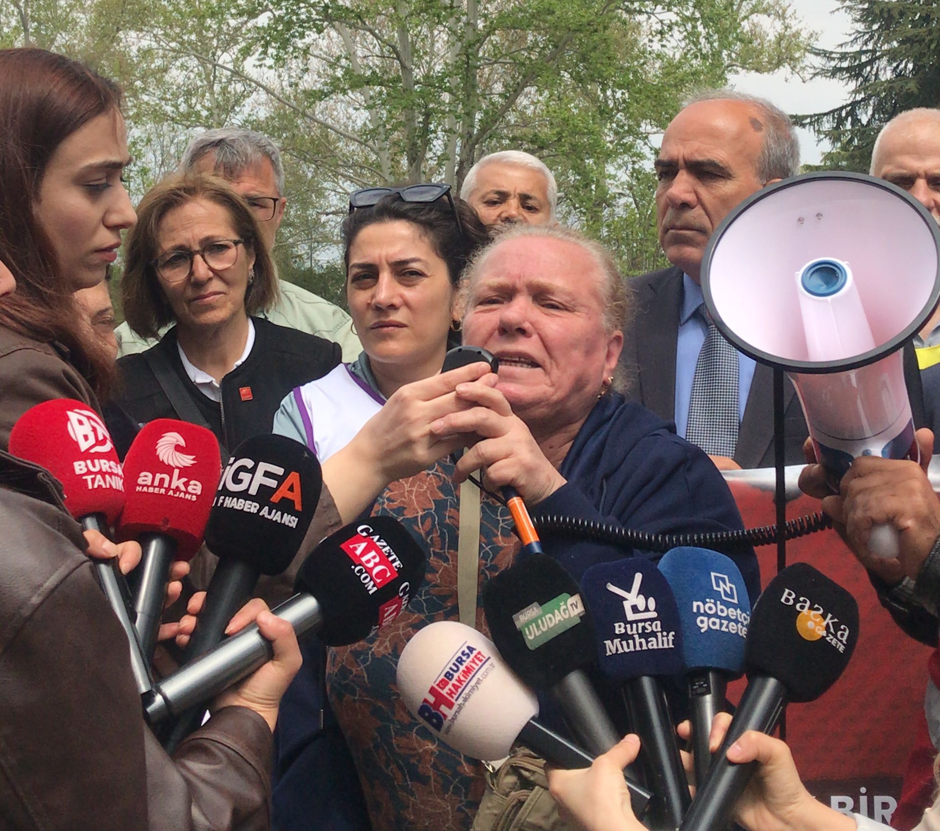 Açıklamaya yapılırken bölge sakinlerinden bir vatandaş: “Bu hastanenin değil, aşağıdaki devlet hastanesinin sahibiyiz biz. 60 senedir burada oturuyorum. Emekli astsubay kızıyım. Benim babam Sarıkamış’ta mayın döşedi. Şimdi onu da kaybettim, annemi de kaybettim. Tek başıma yaşıyorum. İnsülin kullanıyorum, şeker hastasıyım. Dizlerim rahatsız. Bir gözüm görmüyor, katarakt hastasıyım. Siz hastanelerinizi satıp ne yapmak istiyorsunuz? Bizi öldürmek mi? Benim gibi bir sürü hasta var. Şehir Hastanesi’ne gidemeyen insanlar var. Taksiye binecek paramız mı var? Benim babam emekli astsubaydı, ne maaş alıyor ki? Ne parası var ki? Ben taksi tutamam, Şehir Hastanesi’ne gidemem. Hepsi buraya geliyordu; onkolojiye ve devlet hastanesine. Burası 1868’de Guraba Hastanesi oldu. Yetersiz kaldığı için Muradiye’ye döndü. Daha sonra 1951 ve 1952’de devlet hastanesi oldu. Yani Osmanlı diyorsunuz, Osmanlı’nın göbeğindesiniz, Tophane’desiniz. Osmanlı’ya niye saygı duymuyorsunuz da Tophane topraklarındaki bu hastaneyi, onkolojiyi ve devlet hastanesini kapatıyorsunuz? Ne hakla bunu yapıyorsunuz? Nasıl seyrediyorsunuz? Bizim erkeklerimiz sokaklarda. Hepsi mafya, hepsi Polat Alemdar kesilmiş. Siz ne yapıyorsunuz? Bakın, gözlüklerinizi çıkarın. Tophane halkı hastanesini geri istiyor. Hastanelerimi geri istiyorum. Eğer siz buraya otel yaparsanız, hamam yaparsanız her gün bir camınızı kıracaklar. Her gün gelip yüzünüze tüküreceğim. Her gün, herkesin yanında. Kahrolsun! Hayır, değilsiniz. Biz Atatürkçüyüz. Sonuna kadar Atatürkçüyüz ve Atatürk’ün izindeyiz. Atatürk olmasaydı acaba siz ne yapardınız?Buraları sattınız. Fabrikalarımızı sattınız. PTT’lerimizi sattınız. Telekomlarımızı sattınız. Aklınıza gelen her şeyi sattınız. Daha satılmadık neyimiz kaldı? Bizi mi satacaksınız? Para etmem ki, 67 yaşındayım. Bizi mi satacaksınız? Kızlar mı olsun size? Utanın, utanın. Biz biliyoruz. Kaç trilyona sattınız, kime sattınız, saklıyorsunuz. Hepsi çıkacak ortaya. Bu millet size gereken cevabı verecek. Yeter artık, gidin. Gelin içeri. Yeter, gidin artık.” dedi.