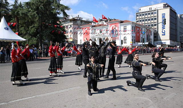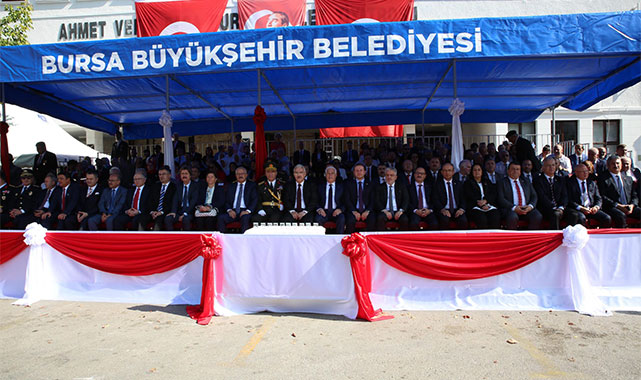 Selamlama sonrası Bursa Büyükşehir Belediyesi Bandosu eşliğinde İstiklal Marşı okundu. Ahmet Hamdi Gökbayrak Fen Lisesi öğrencileri Halit Berkcan ve Zeynep Uğuz tarafından şiir okunurken, Yıldırım, Nilüfer ve Osmangazi Belediyesi Halk Oyunları folklor ekipleri de gösterilerini sundu. Askeri Veteriner Okulu Eğitim Merkez Komutanlığı ve Garnizon Komutanlığı adına günün anlam ve önemini belirten konuşmayı Personel Yüzbaşı Mustafa Çetin yaptı. Bursa Mehteren Takımı ve Tahtakıran, Kılıç - Kalkan Halk Oyunları Derneği ekiplerinin gösterileri sonrası program resmi geçitle devam etti. Bayraklar ve marşlar eşliğindeki törenlere eşlik eden vatandaşlar, 30 Ağustos Zafer Bayramı coşkusunu hep birlikte yaşadı.