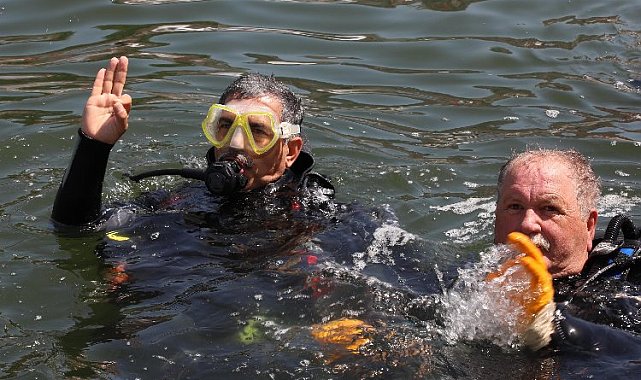 Bursa Büyükşehir Belediyesi, Gemlik Belediyesi ve Borusan işbirliği ile düzenlenen "Çevre Günü ve Haftası" etkinlikleri kapsamında dalgıçlarla Gemlik İskelesi civarında deniz dibi temizliği çalışması yapıldıBURSA (İGFA) - Gemlik Belediye Başkanı Şükrü Deviren, profesyonel dalgıçlar eşliğinde dört metreyi aşkın dalış gerçekleştirdi.İskele açıklarında deniz zemininde atıkları inceleyen Başkan Deviren ve dalgıçlar, burada da çeşitli malzemeleri su üzerine çıkardılar. Yaklaşık üç saat süren dalışlar sonunda dev atıkların yanı sıra beş çuval çöp de iskele meydanına getirildi.Dalışın ardından sergilenen atıkların önüne gelen Başkan Deviren, Bursa Büyükşehir Belediyesi Daire Müdürleri ve dalgıçlar, "Denizlerde temizlik yarınlarda umut" yazılı pankartın önünde poz verdiler.Başkan Deviren, dalışta yaşadıklarını şu sözlerle anlattı: "Denizin dibi gerçekten çok kötü, herkesin mutlaka denizin dibini görmesi lazım. Çünkü görünce o kötü manzarayı, belki vicdanlar sızlar. Dalış hocalarımızdan Mehmet Bey'in de bir sözü var, bu söz aslında bu konuyu özetliyor, denizler elle değil vicdanla temizlenir. Gemlik'in neden bir mavi bayrağı olmasın, Gemlik'in neden bir marinası olmasın, Gemlik neden bir turizm merkezi olmasın? 35 kilometrelik sahil şeridiyle Türkiye'nin göz bebeği olabilecek bir yer Gemlik. İstanbul'a ve İzmir'e yakınlığı ile muazzam bir değer Gemlik ve bizim bu değere sahip çıkmamız gerekiyor. Sahip çıkabilmemiz içinde doğamızı ve denizimizi temiz tutmamız gerekiyor."