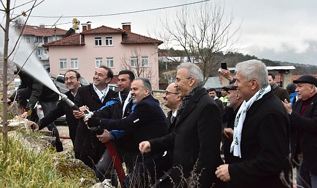 Konuşmaların ardından Başkan Aktaş ve beraberindekiler, vanayı açarak içme suyu hattının açılışını yaptı.