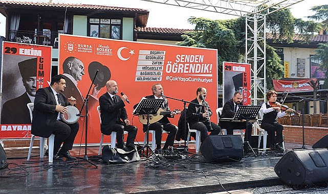 29 Ekim Cumhuriyet Bayramı etkinlikleri, Bursa Valiliği tarafından Atatürk Anıtı’nda düzenlenen çelenk sunma töreni ile başladı. Bursa Büyükşehir Belediyesi Kültür ve Sosyal İşler Dairesi Başkanlığı Orkestra Şube Müdürlüğü’ne bağlı Türk Sanat Müziği, Türk Halk Müziği, Çalgıcı Mektebi Roman Orkestrası ve Bando Şefliği tarafından Zafer Plaza Önü, Unesco Meydanı, Kapalı Çarşı, Setbaşı Kütüphanesi ve Kent Meydanı Avm önünde mini konserler verildi. Vals gösterilerinin de yapıldığı etkinliklere, Bursalılar ellerinde Türk bayraklarıyla katıldı. Vatandaşlar, Cumhuriyet’in coşkusunu gün boyunca doyasıya yaşadı. Cumhuriyet Bayramı kapsamında Atatürk Stadyumu Kütüphanesi’nde ise ‘Atatürk, Cumhuriyet ve Çocuklar' temalı bir söyleşi düzenlendi. Yazar Mavisel Yener’in konuşmacı olduğu programda, Mustafa Kemal Atatürk’ün yazdığı kitaplar, kitap sevgisi ve bilime verdiği önem anlatıldı.