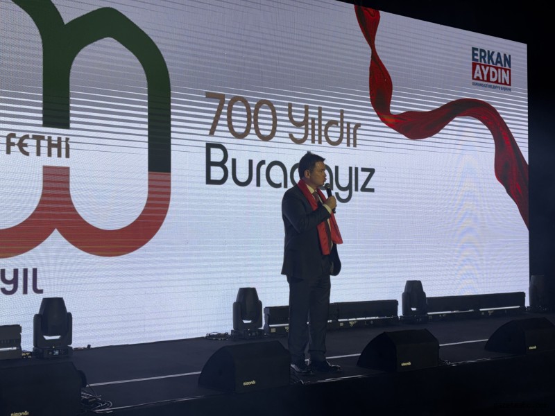 Bu anlamlı yılın kalıcı bir simgeyle anılmasını istedik ve halkımızın katılımıyla bir logo yarışması düzenledik. Özgürce fikirlerin ifade edildiği bu süreç sonunda, gerçekten çok güçlü, estetik ve sinematik bir 700. yıl logosu ortaya çıktı. Birazdan yarışmada birinci olan kardeşimize ödülünü takdim edeceğiz. Özetle; 700 yıldır bu topraklardayız. Allah’ın izniyle, daha nice 700 yıllar boyunca burada olmaya devam edeceğiz. Bugün ülkemizin etrafında çevrilen sinsi planlara karşı; Anadolu’yu ve Bursa’yı nasıl 700 yıl önce yurt edindiysek, aynı kararlılıkla sahip çıkacağız. Gazi Mustafa Kemal Atatürk’ün de ifade ettiği gibi; Cumhuriyetimize payidar olacak, birlik ve beraberlik içinde bu topraklarda yaşamayı sürdüreceğiz.” dedi.