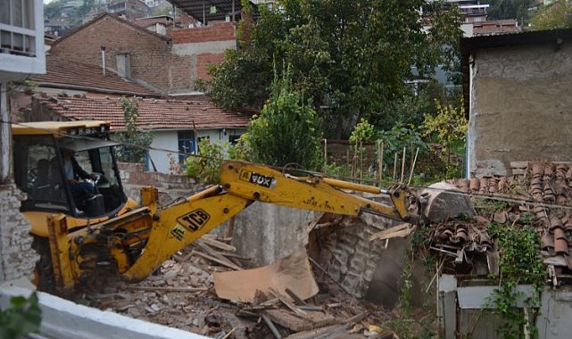Bursa'da Osmangazi Belediyesi, Muradiye Mahallesi'nde madde bağımlılarının mesken tutması nedeniyle halkın can ve mal güvenliğini tehdit eden metruk binanın yıkımını gerçekleştirdi.BURSA (İGFA) - Osmangazi'de yer alan metruk binalar, ardı ardına yıkılıyor.İlçe genelinde vatandaşlar ve çevre için tehlike arz eden metruk binalar ile ilgili çalışmalar gerçekleştiren Osmangazi, Belediyesi, halkın can ve mal güvenliğini tehdit etmesinin yanı sıra kimi zaman madde bağımlılarının mekânına dönüşen ve görsel kirlilik oluşturan metruk yapıları, yasal işlemlerinin tamamlanmasının ardından yıkıyor.Osmangazi Belediyesi Yapı Kontrol Müdürlüğü ekipleri son olarak Muradiye Mahallesi'nde yer alan bir metruk binanın yıkımını gerçekleştirdi. Yıkım öncesi çevre güvenliğini alan ekipler, daha sonra iş makinesi desteğiyle harabeye dönen yapıyı yıktı. Yıkımın sonunda ortaya çıkan moloz ve atıklar, kamyonlara yüklenip mahalleden çıkarıldı.
