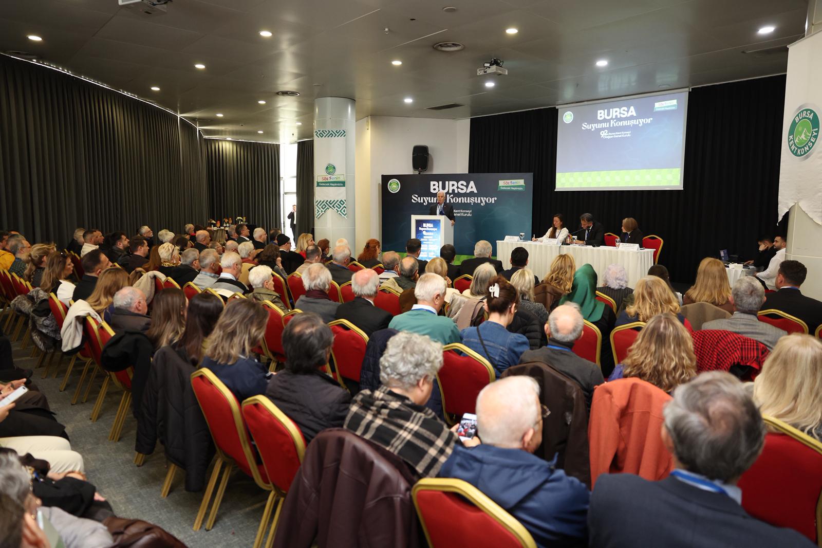 Açılış konuşmalarının ardından oturum bölümüne geçildi. Bursa Uludağ Üniversitesi’nden Prof. Dr. Hayrettin Kuşçu ‘Tarımsal kuraklık koşullarında su verimliliği ve etkin sulama yöntemi’, Bursa Uludağ Üniversitesi’nden Doç. Dr. Aslıhan Katip ‘İklim değişikliği ve sürdürülebilirlik çerçevesinde su kaynakları’, BUSKİ Genel Müdür Yardımcısı Ali Alper Makam ‘İklim değişikliğinin Bursa ve su kaynakları üzerindeki etkisi’, Bursa Kent Konseyi Yürütme Kurulu üyesi Murat Demir ‘İklim krizi ve su hakkı’ konularında sunumlar yaparak önemli bilgiler paylaştı.