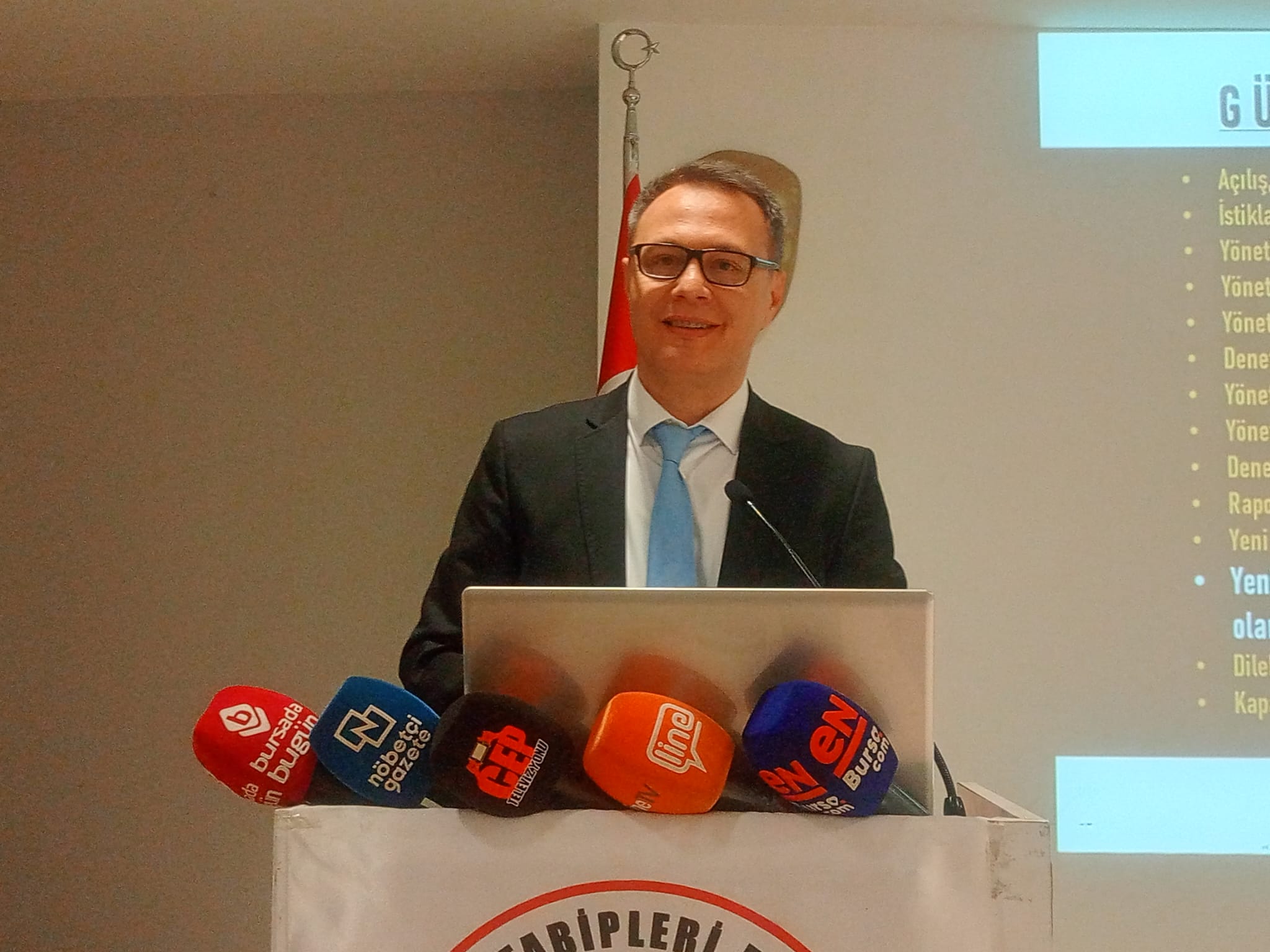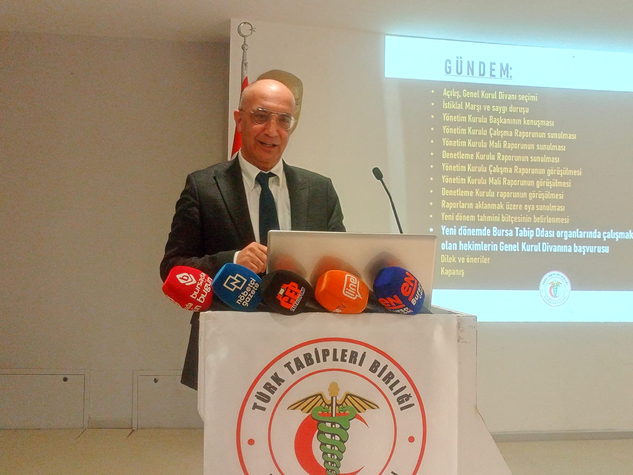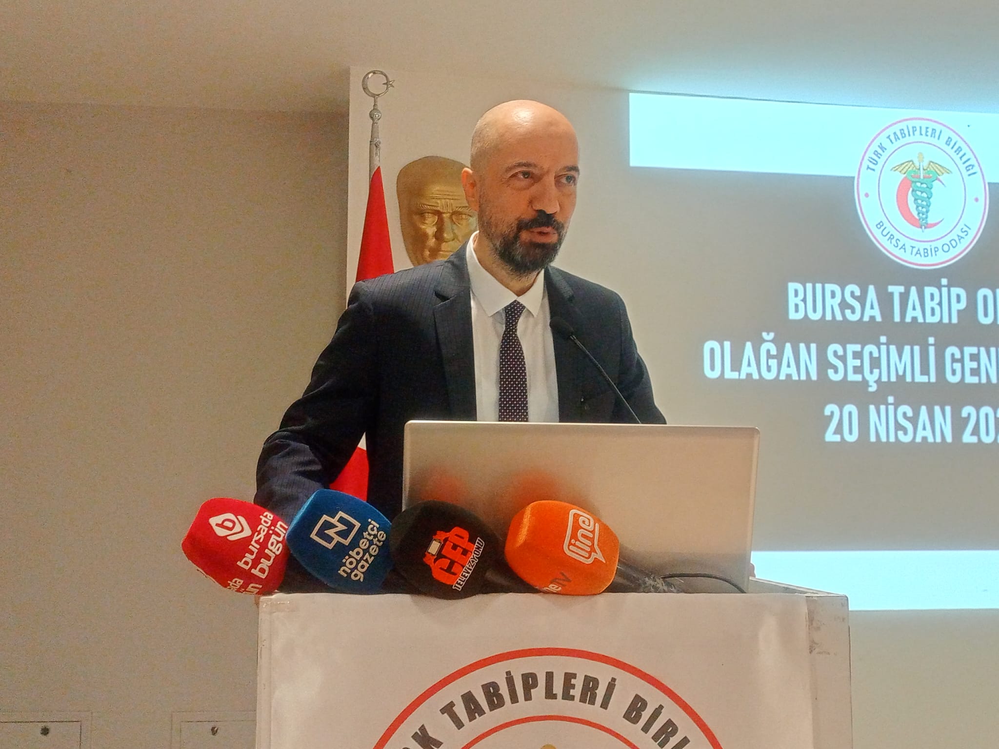 Bursa Tabipler Odası Başkanı Levent Tufan Kumaş: "Hekimler olarak bizler sağlık hakkına girişimde sorun yaşamayan bir toplumda mesleğin gereklerini yerine getirebilecek koşullarda çalışıyor olabilmeyi istiyoruz. Ancak diyoruz ki içinde bulunduğumuz sağlık ortamı bu beklentimizin çok uzağında ve her geçen gün bizi tüketmeye devam ediyor. Sağlığın temel bir insan değil meta olarak gören, toplumun sağlığını korumayı değil, sağlık hizmetini, ticaretin bir aracı olarak eline koyan sağlık politikaları ekim ayında günden güne ucuz iş gücüne mücadele sağlık gündeminin bir rutini haline gelen şiddet baskısı, liyakatsiz yöneticiler, mobbing gittikçe ağırlaşan çalışma koşulları ve örgüt haklarında yaşanan kayıplar hekimlerin sabır sınırlarını aştı.