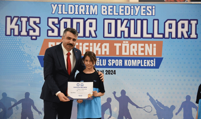 Yıldırım Belediyesi’nin 13 farklı branşta düzenlediği Kış Spor Okulları tamamlandı. Eğitimlerini tamamlayan sporcular için Naim Süleymanoğlu Spor Kompleksi’nde sertifika töreni düzenlendi. Törene; Yıldırım Belediye Başkanı Oktay Yılmaz ile birlikte Büyükşehir Belediyesi Başkan Vekili Fethi Yıldız, İlçe Spor ve Gençlik Müdürü Mehmet Demirci, belediye meclis üyeleri, veliler ve sporcular katıldı. Badminton, basketbol, boks, cimnastik, futbol, güreş, karate, okçuluk, satranç, taekwondo, tenis, voleybol ve yüzme branşlarında eğitimini tamamlayan 2 bin 400 sporcunun sertifikalarını aldığı törende konuşan Yıldırım Belediye Başkanı Oktay Yılmaz, özellikle çocukların ve gençlerin gelişiminde sporun önemine vurgu yaparak, “Çocuklarımızın ve gençlerimizin, fiziksel ve ruhsal gelişimlerinin sağlıklı ilerleyebilmesi için onların en az bir spor branşı ve bir sanat dalında aktif olarak yer almalarını istiyoruz. Gençlerimize bu imkânı sağlayacak projeler geliştiriyoruz” dedi.