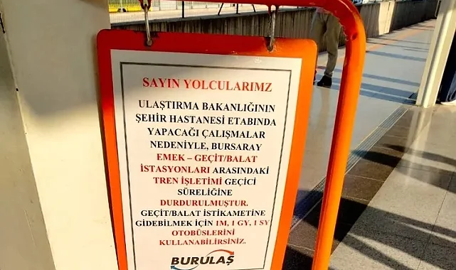 Bursa'da 31 Mart seçimlerinin öncesinde hizmete giren Balat Metro İstasyonunun geçici bir süre ile kapatıldığı duyuruldu.BURSA (İGFA) - Bursa'da 31 Mart'taki seçimlerden hemen önce hizmete giren Balat/Geçit Metro İstasyonuna yapılan sefelerin geçici olarak durdurulduğu açıklandı. Yapılan duyuruda Ulaştırma Bakanlığının Bursa Şehir Hastanesi etabında yapacağı çalışmalar nedeniyle seferlerin belirsiz bir süreliğine iptal edildiği belirtildi.Bursalılar seferlerin en kısa süre içerisinde tekrar başlamasını istiyor.