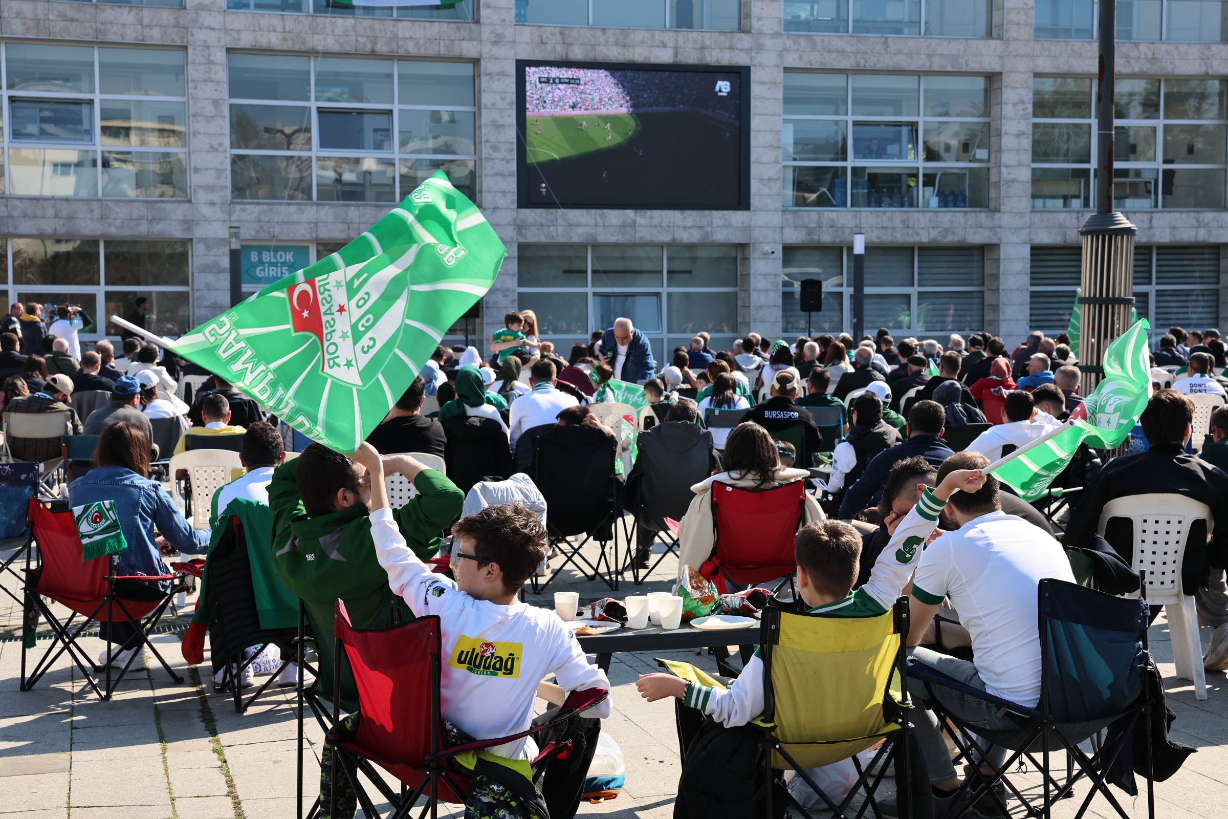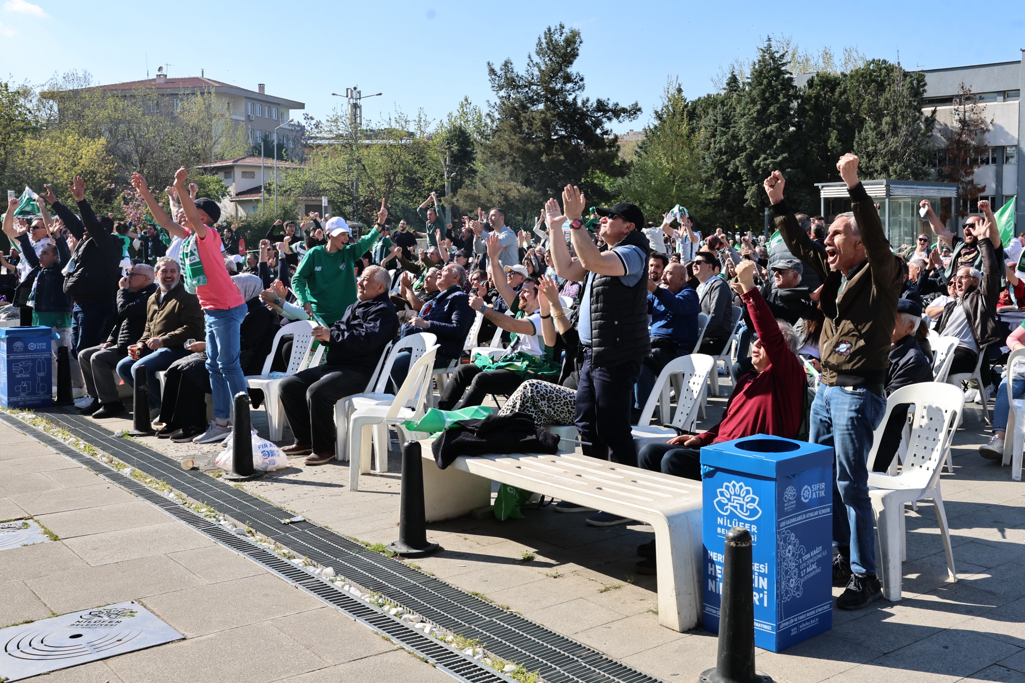 Nilüfer Belediyesi Halk Evi önündeki Cumhuriyet Meydanı’na kurulan dev ekran sayesinde yüzlerce taraftar, şampiyonluk maçını birlikte takip etti. “Omuz Omuza Zafer Yolu” sloganıyla gerçekleştirilen organizasyonda alan, adeta bir stadyum atmosferine dönüştü.