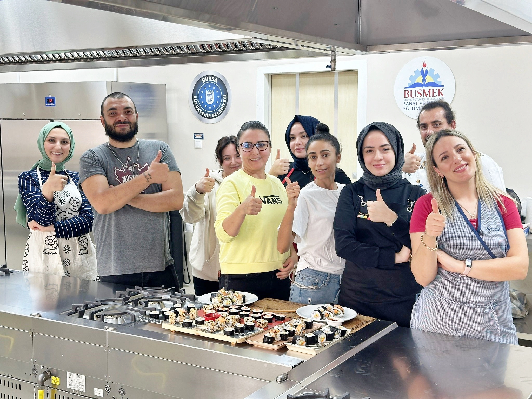 Bursa’nın sanat ve mesleki eğitim alanında en önemli markası olan BUSMEK, mutfaktaki yeteneklerini geliştirmek ve yeni lezzetler keşfetmek isteyenleri, aşçılık ve pastacılık atölyelerinde buluşturdu. Yeni Karaman Kurs Merkezi’nin yenilenen mutfağında yapılan atölyelere katılan kursiyerler, lezzet yolculuğunun püf noktalarını öğrendi.Bursa’da hizmetleriyle adeta bir halk üniversitesine dönüşen Büyükşehir Belediyesi Sanat ve Meslek Eğitimi Kursları (BUSMEK), anaokulundan başlayarak hayat boyu öğrenme felsefesi ile toplumun tüm kesimlerini kucaklamaya devam ediyor. Planlı eğitimlerin yanında düzenlendiği atölye çalışmalarıyla da vatandaşlara yeni ufuklar açan BUSMEK, yoğun ilgi gören yemek ve pasta alanlarındaki branşların eğitiminin verildiği Yeni Karaman Kurs Merkezi’nin mutfağını sil baştan yeniledi. Daha profesyonel hale gelen mutfaktaki eğitimler, aşçılık ve pastacılık alanındaki atölye çalışmalarıyla başladı.Aşçılık ve Pastacılık olarak ikiye ayrılan atölye çalışmalarında, birçok farklı branşta birer günlük eğitimler gerçekleştirildi. Aşçılık sınıflarında; Pratik Pizza Yapımı, Gaziantep Mutfağı, Taze Makarna Yapımı, Bursa Mutfağı, Suşi Yapımı, Zeytinyağlılar ve Mezeler, Bursa Sokak Lezzetleri başlıkları işlendi. Pastacılık sınıfında ise; Yaş Pasta Yapımı, Sütlü Tatlılar, Fransız Tatlılar, Çikolata Butiği ve Popüler Kurabiyeler ile mutfakta hünerler sergilendi ve püf noktaları öğrenildi.